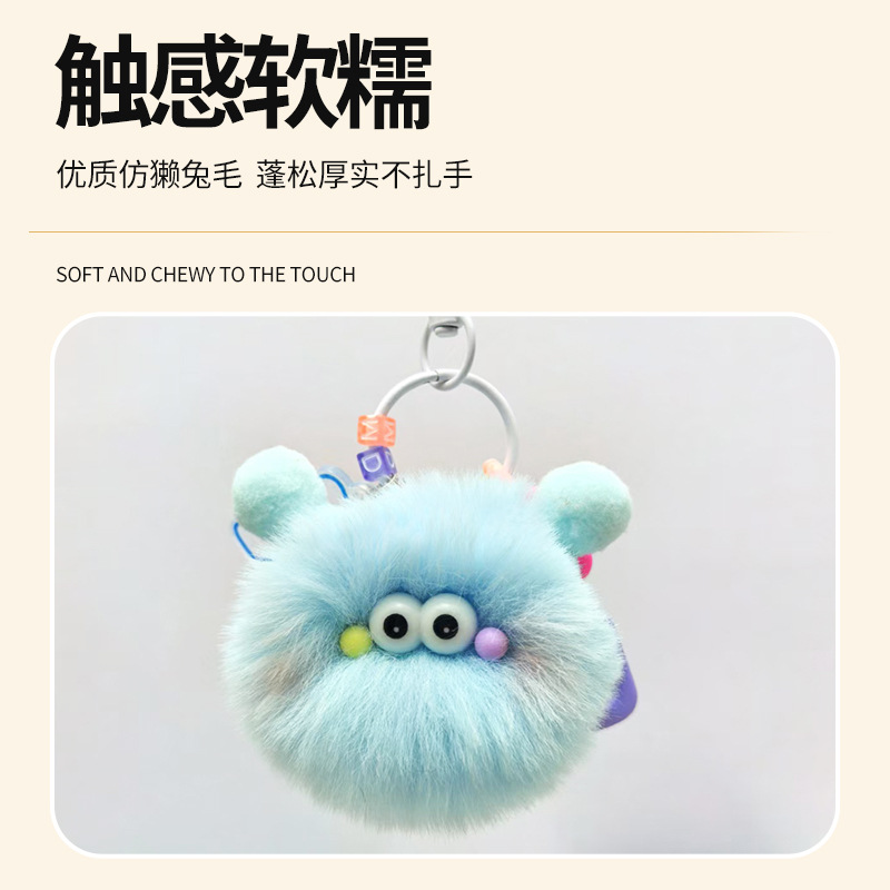 双马尾毛毛小煤球挂件汽车钥匙扣书包包包挂饰背玩偶饰品清新甜美