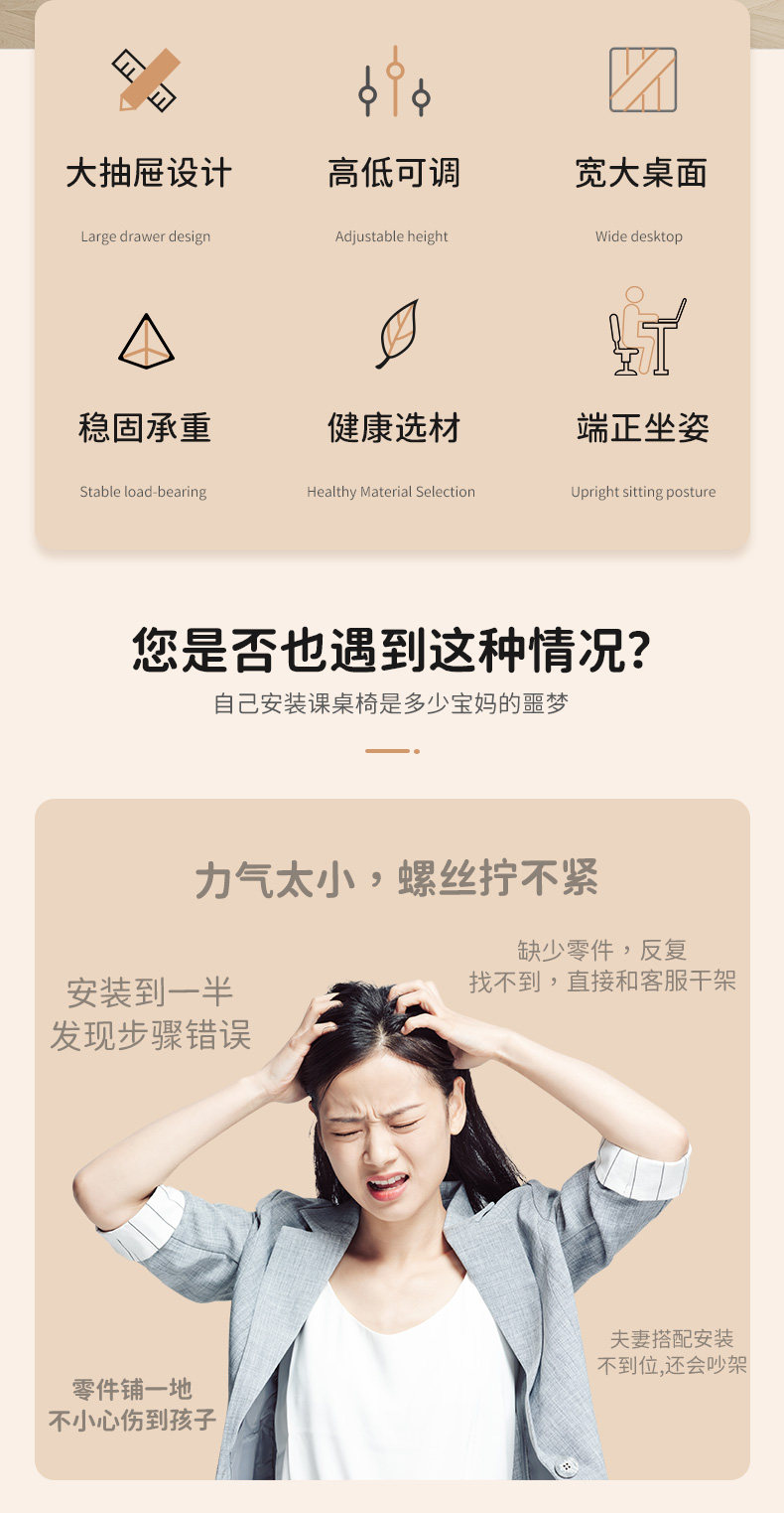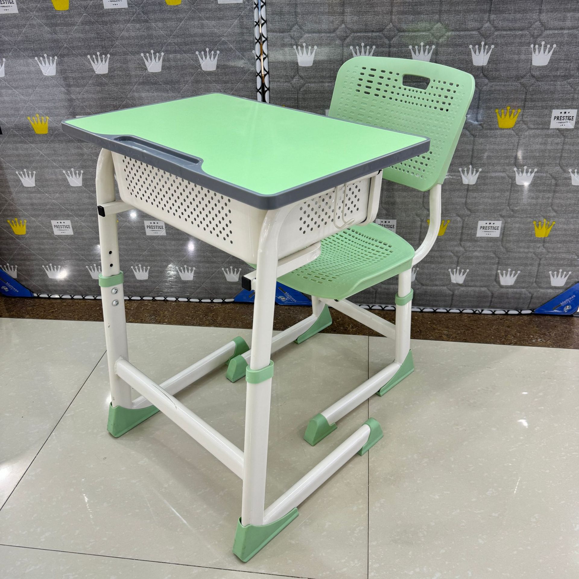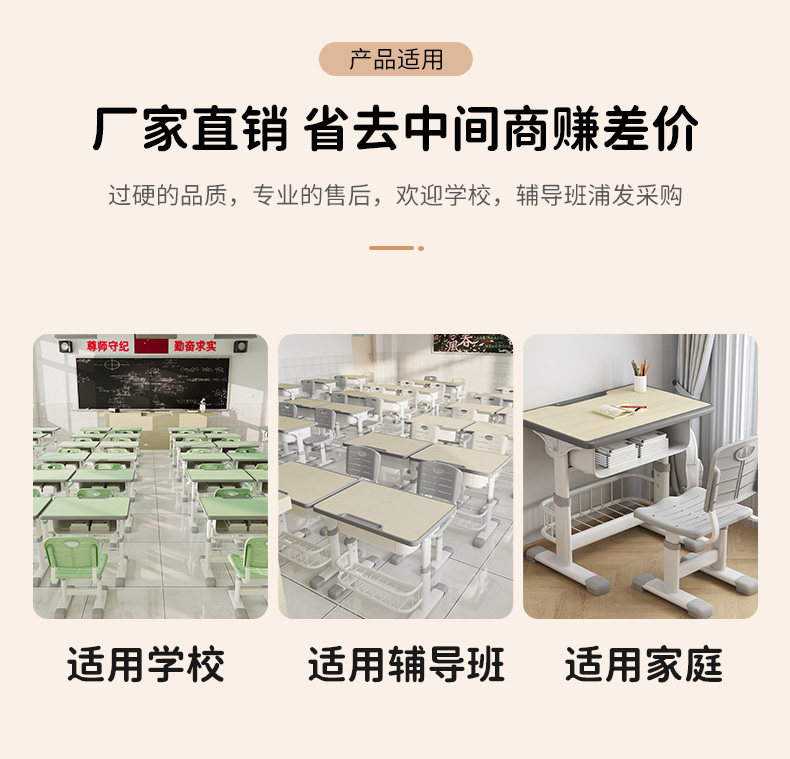 新款小学生家用可升降写字桌儿童学习桌椅培训班学校课桌椅组合 投诉