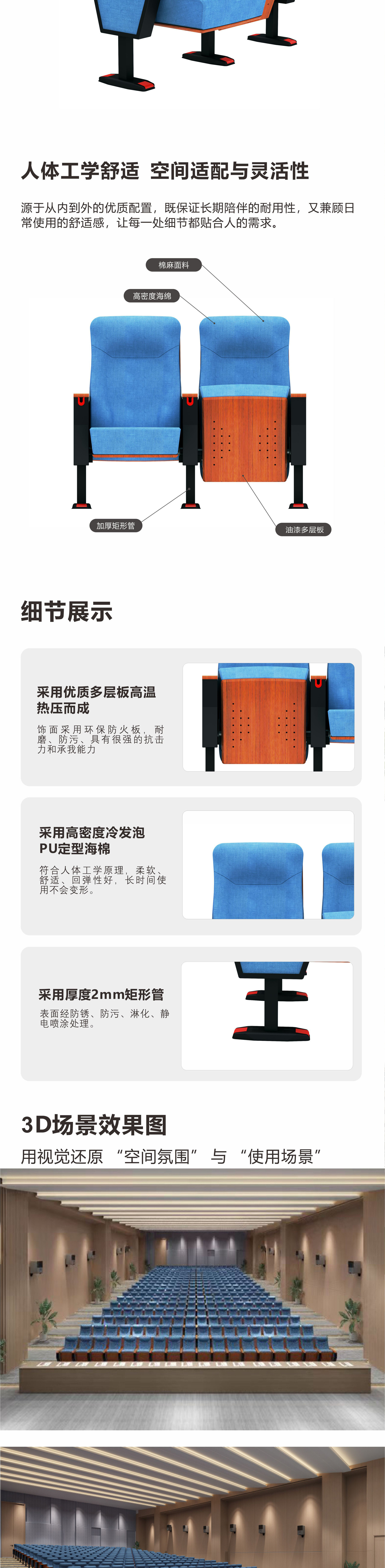 报告厅礼堂椅音乐厅会议室阶梯教室联连排椅剧场软包游轮座椅