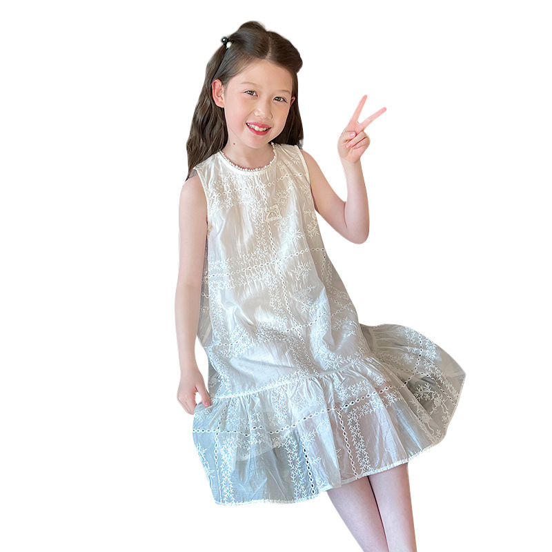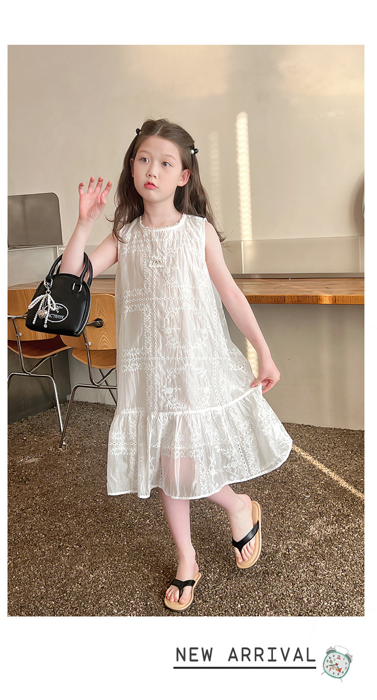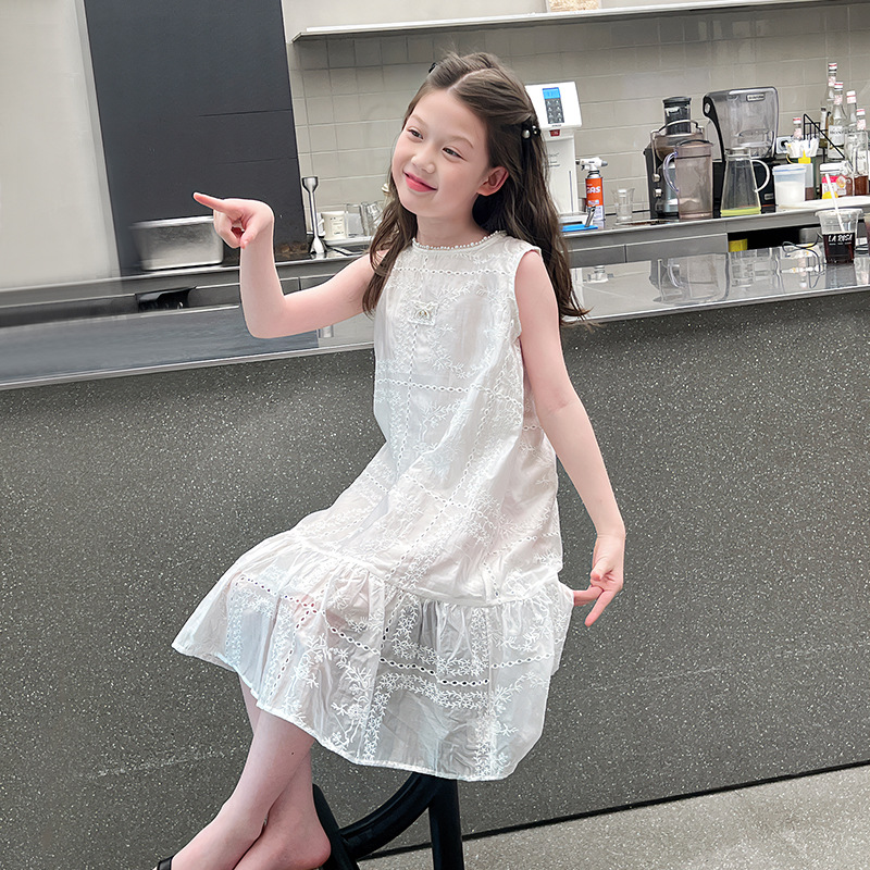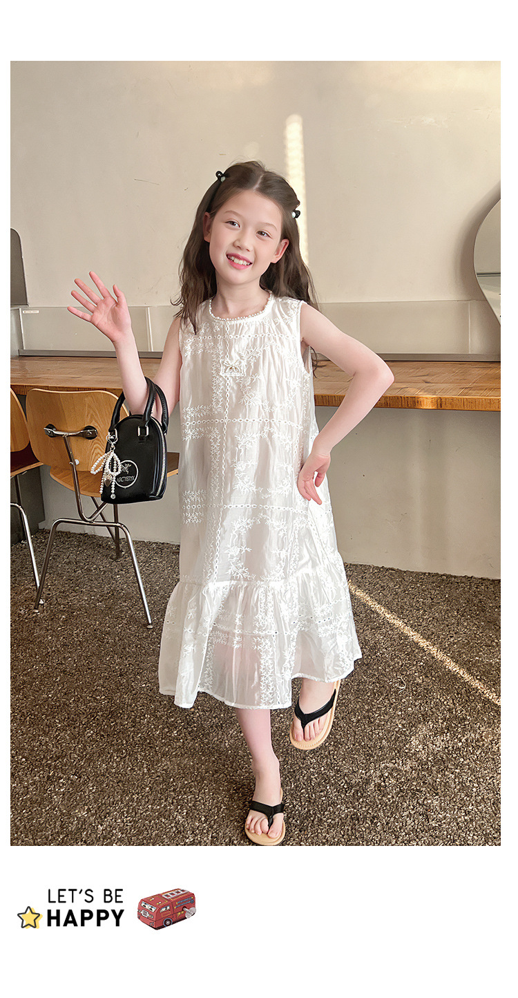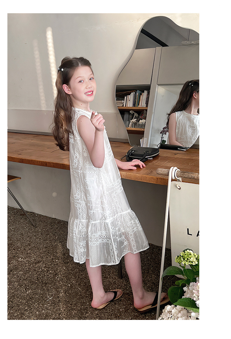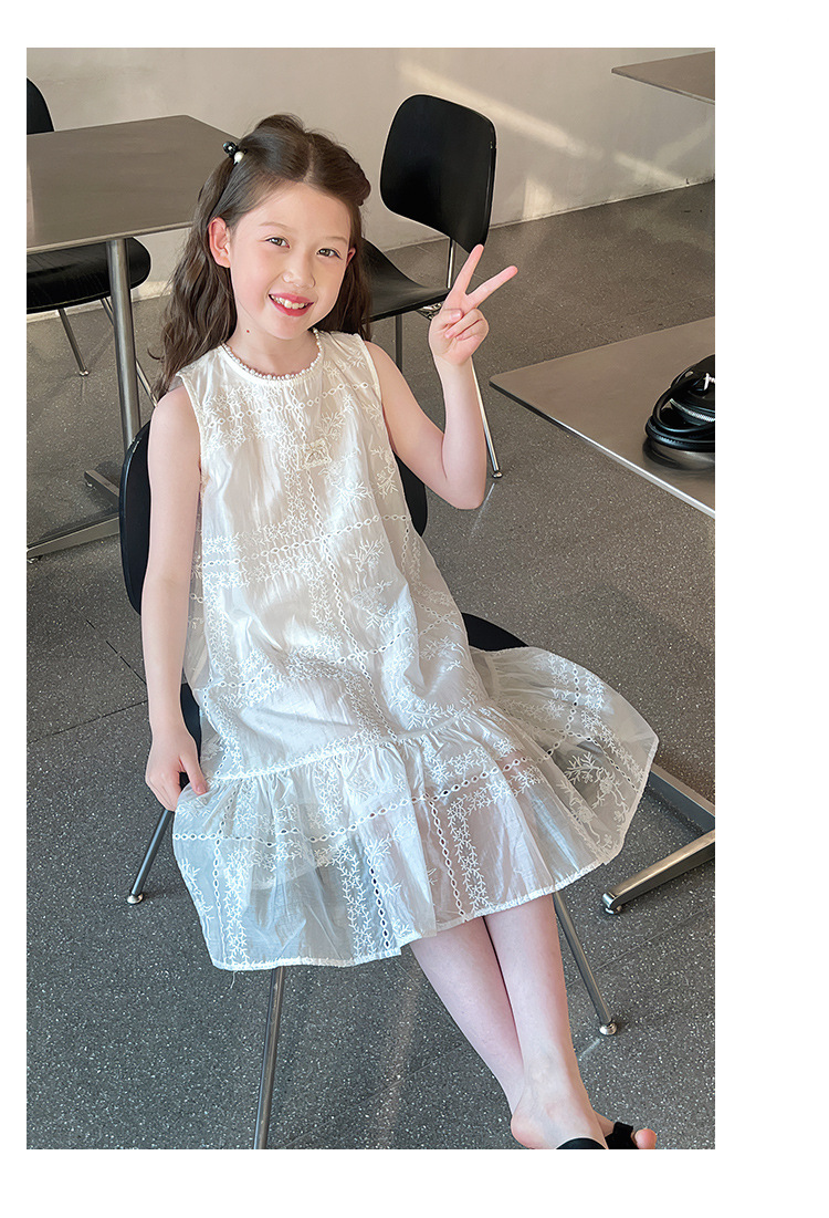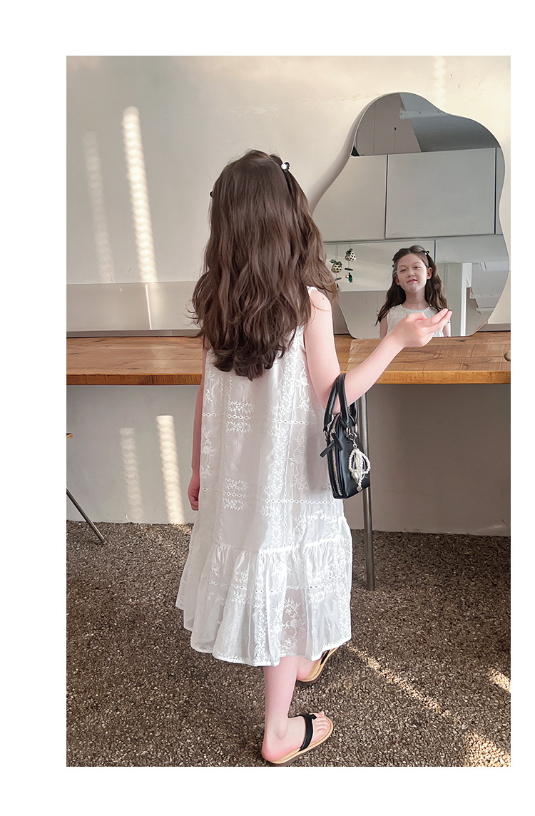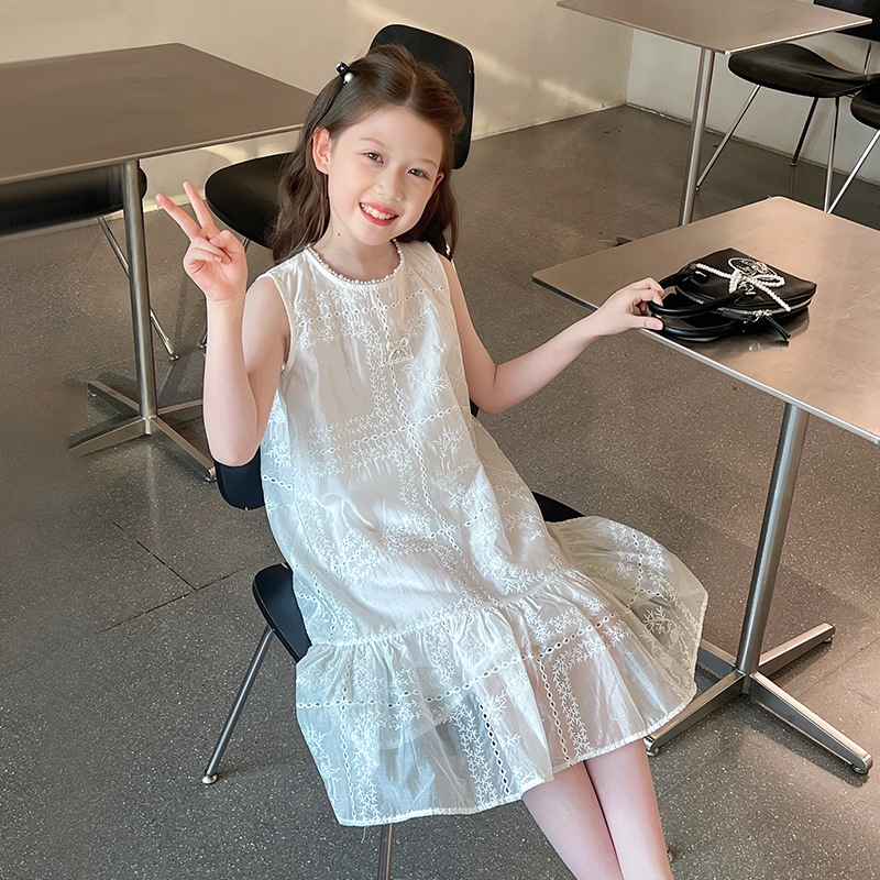 大童天丝背心裙子女童洋气无袖公主连衣裙儿童长裙2025夏装新款