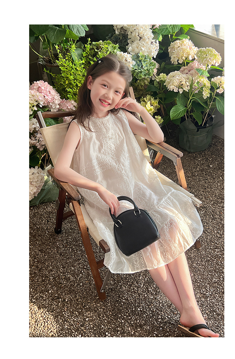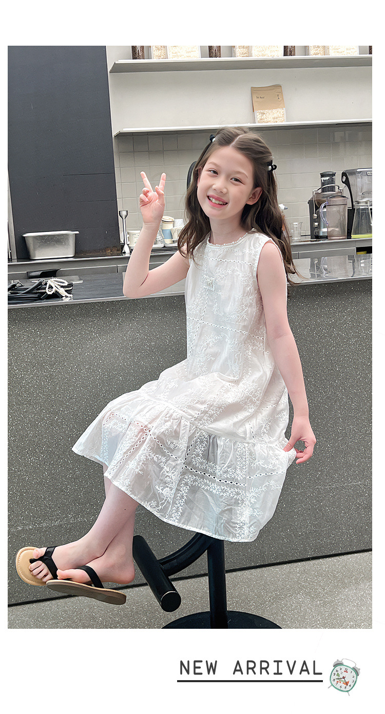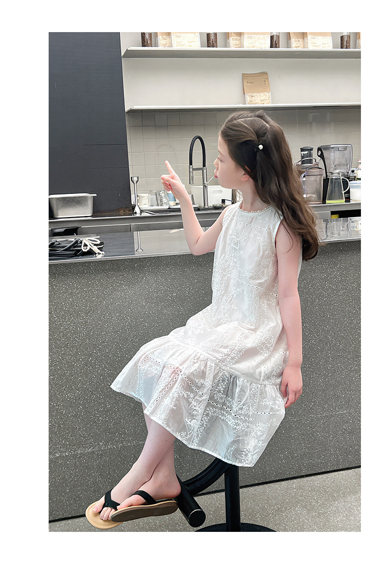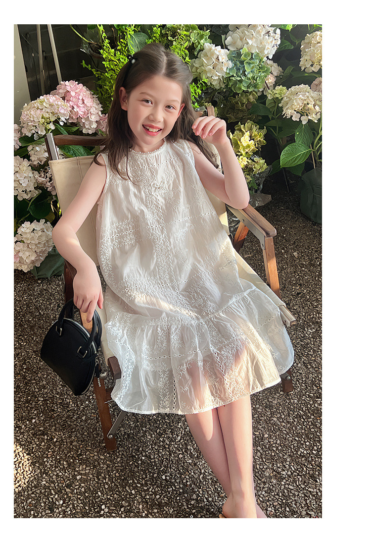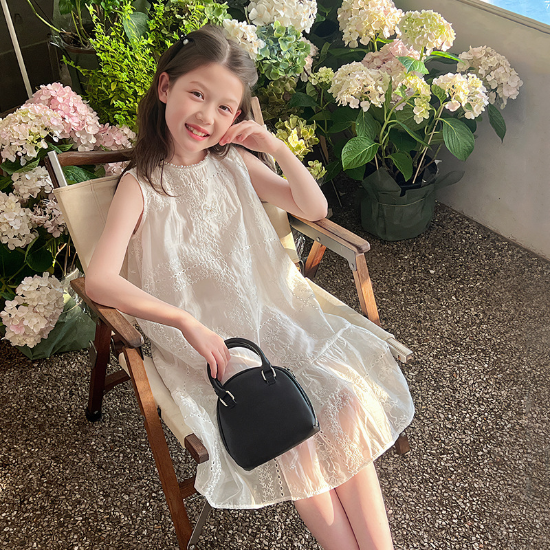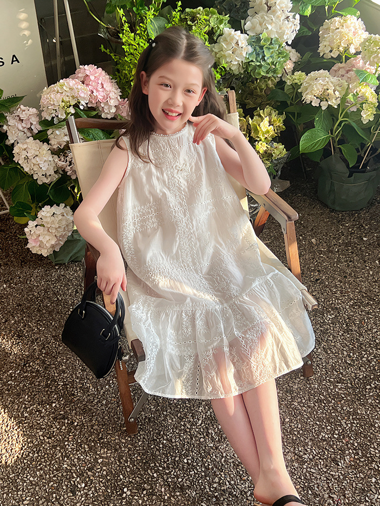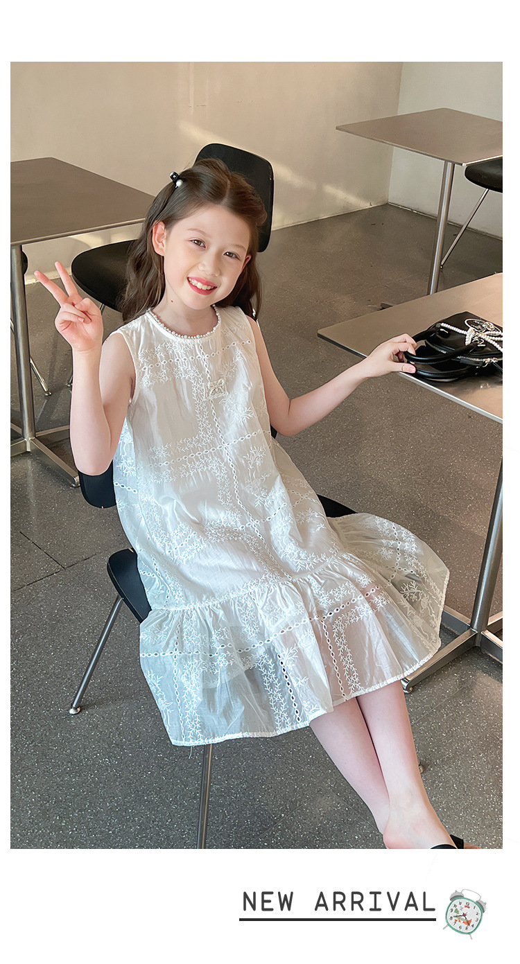 大童天丝背心裙子女童洋气无袖公主连衣裙儿童长裙2025夏装新款