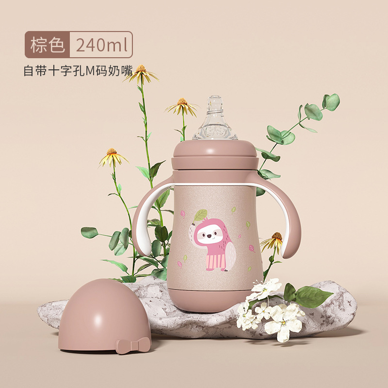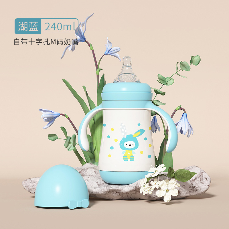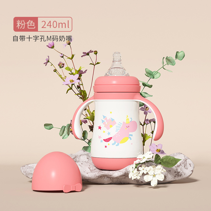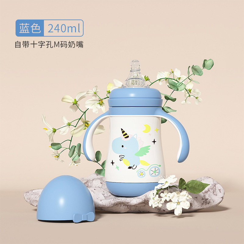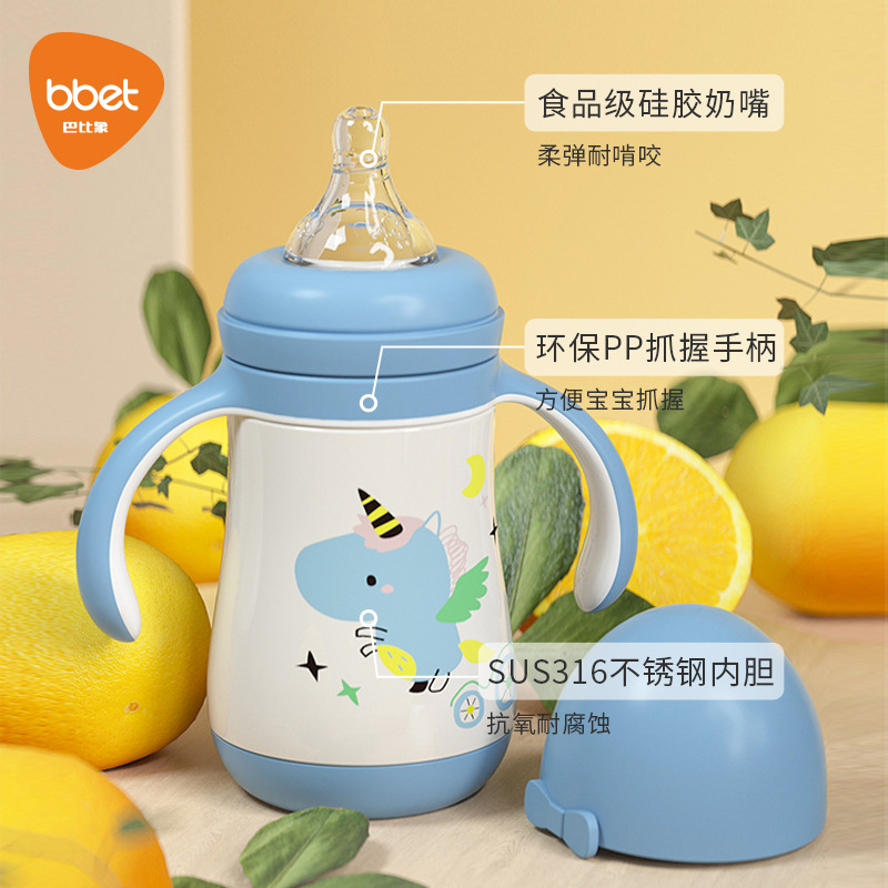 大容量吸管杯喝奶瓶316不锈钢水杯儿童保温杯宝宝学饮杯鸭嘴两用