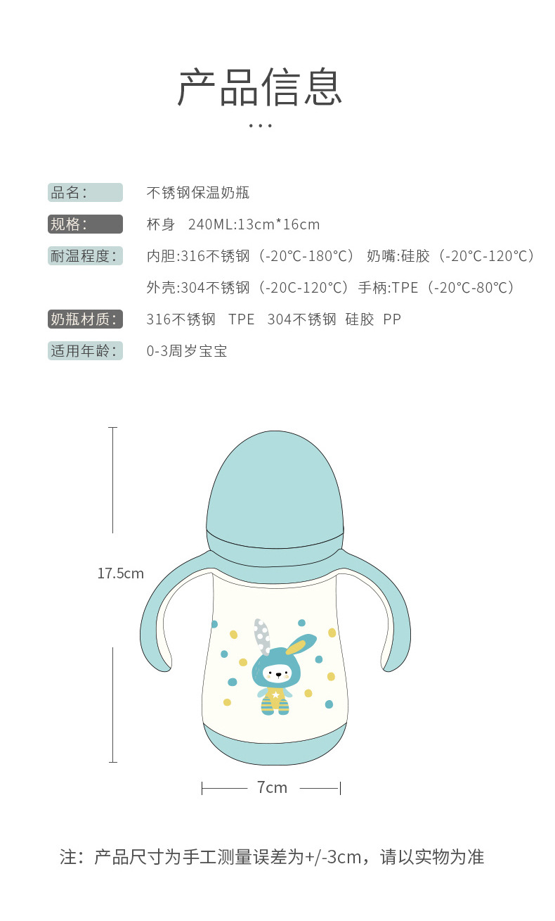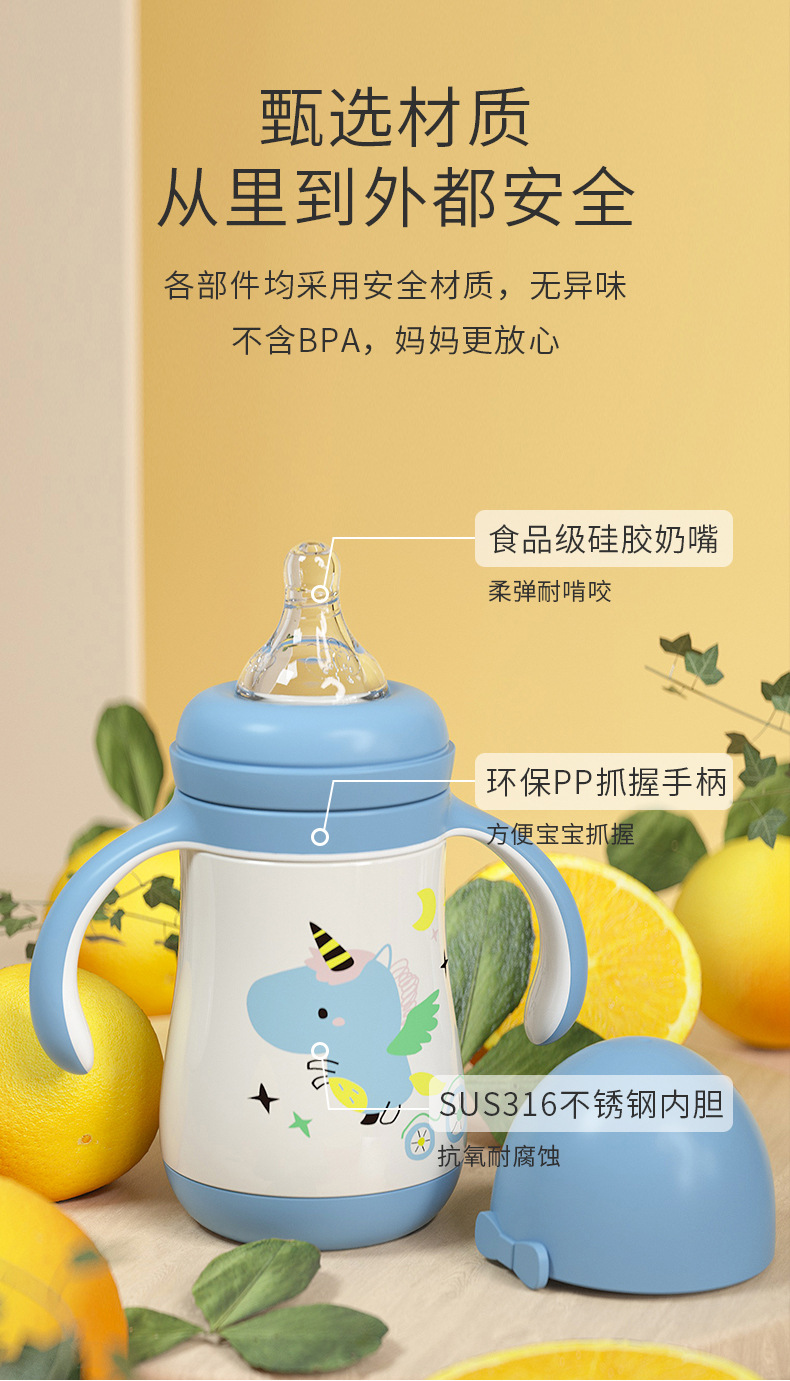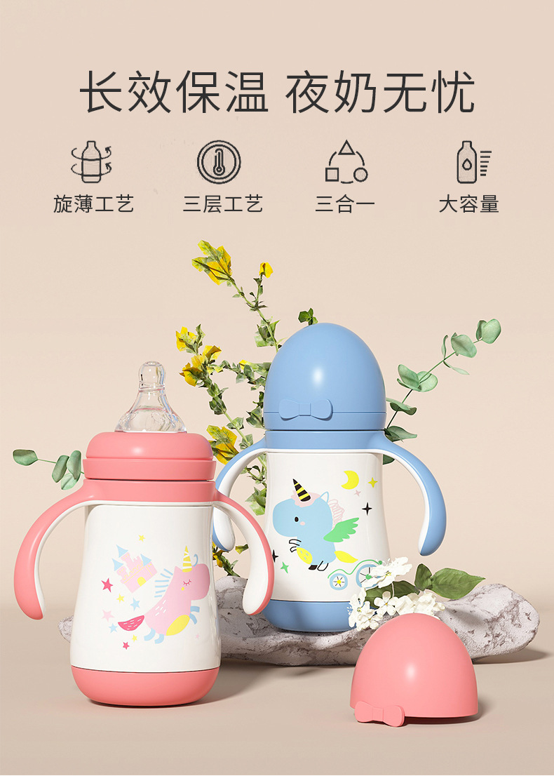 大容量吸管杯喝奶瓶316不锈钢水杯儿童保温杯宝宝学饮杯鸭嘴两用 投诉