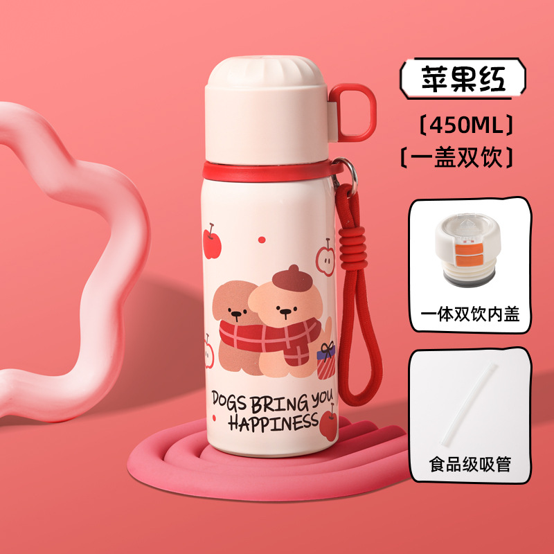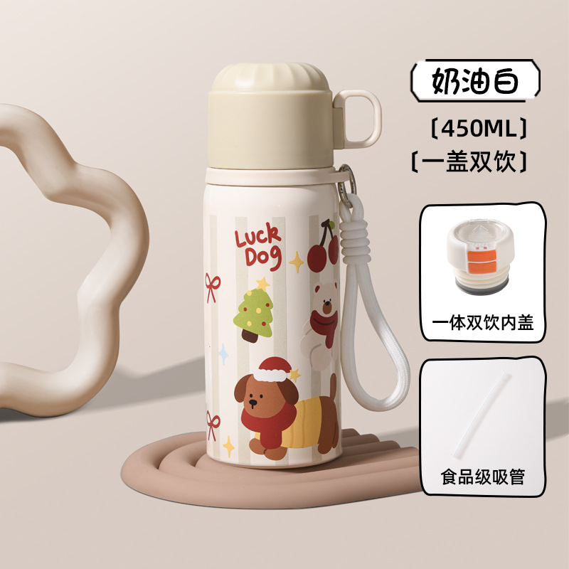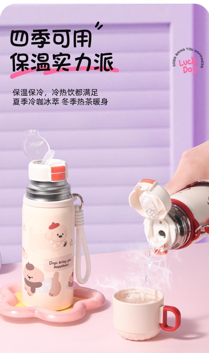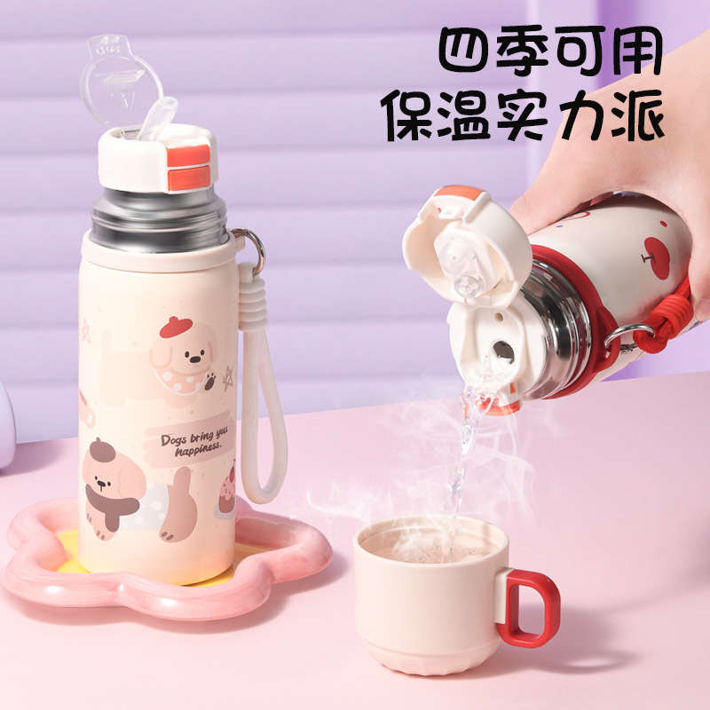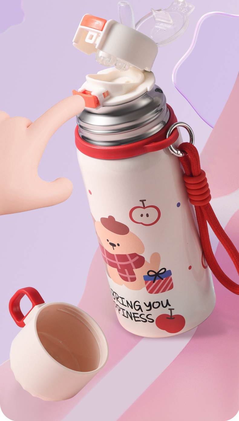 可爱儿童保温杯大容量保温水杯女生高颜值吸管杯不锈钢学生专用杯