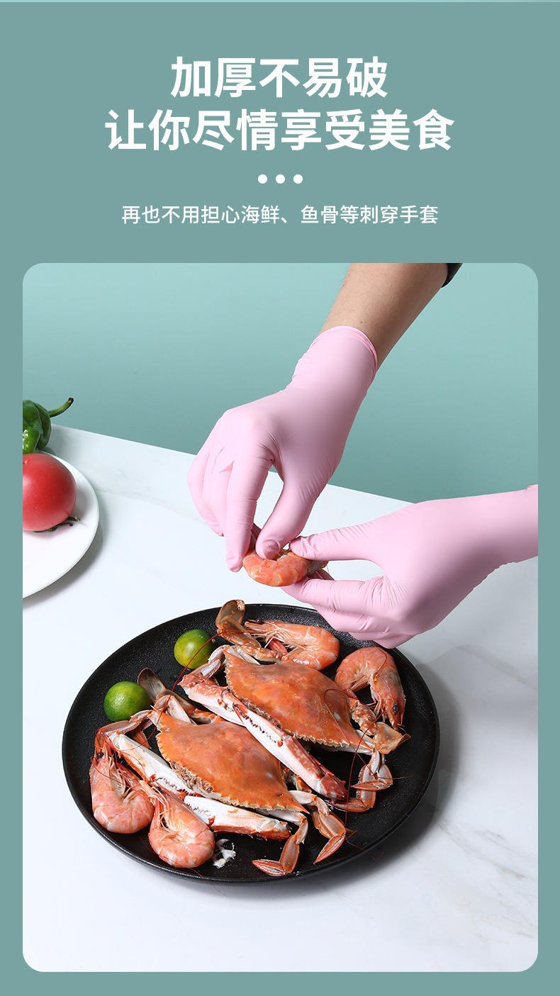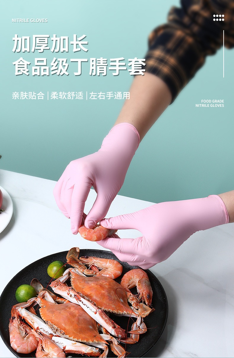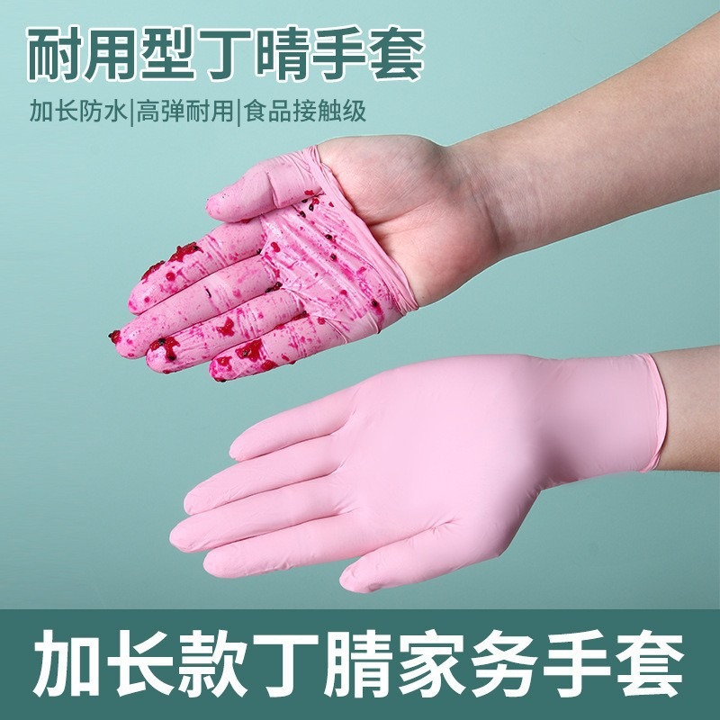 丁腈手套一次性食品级家务厨房加厚加长洗碗手套防水防油清洁手套