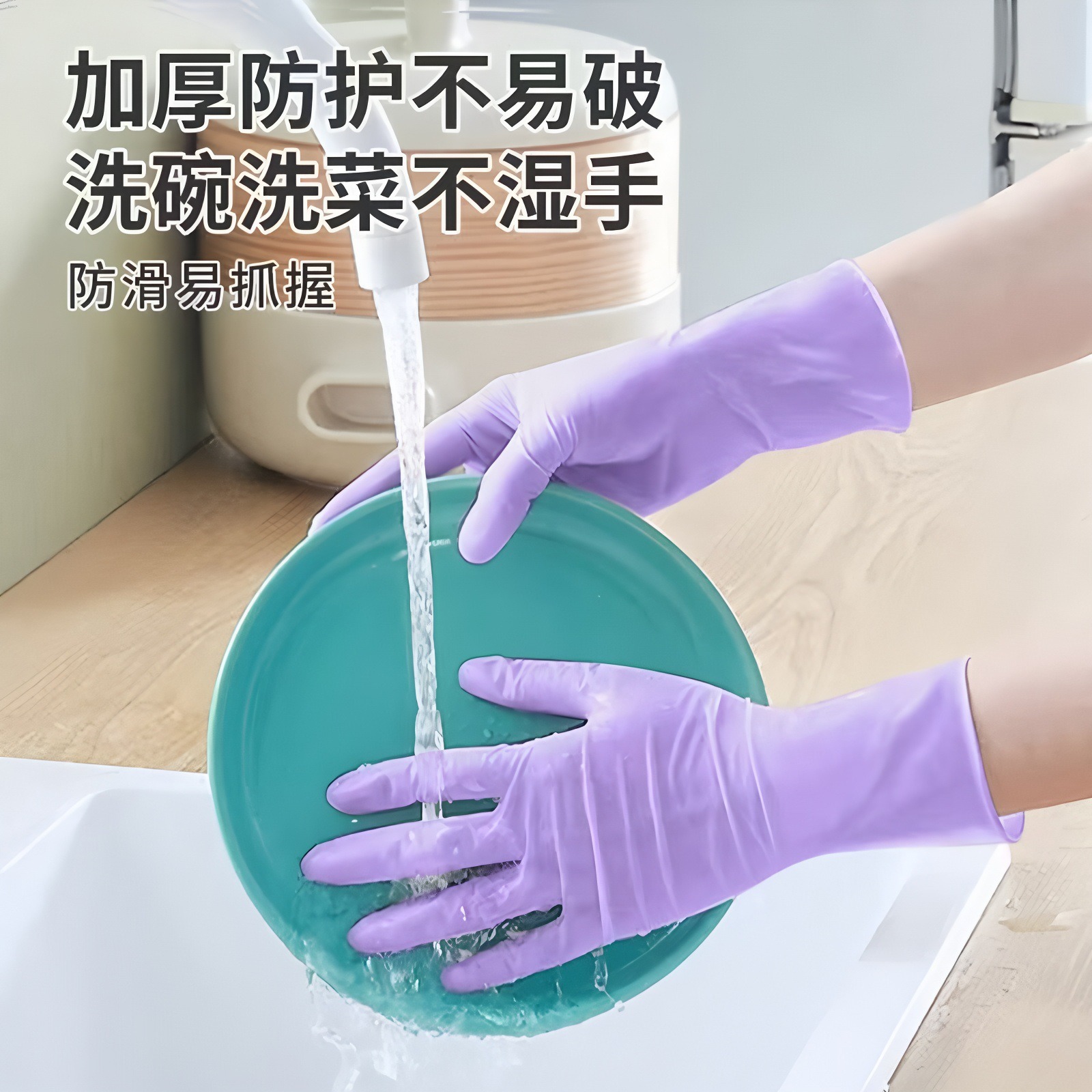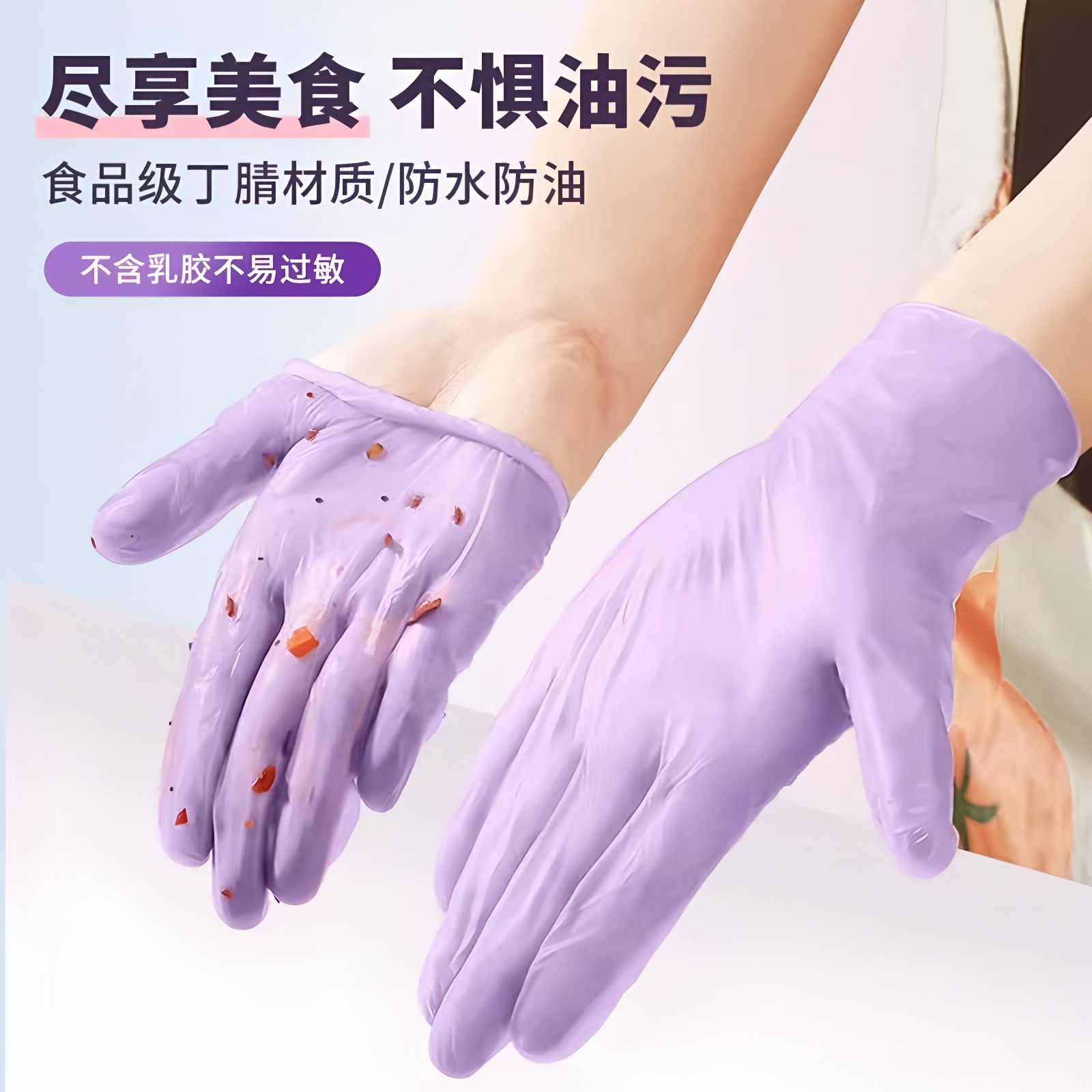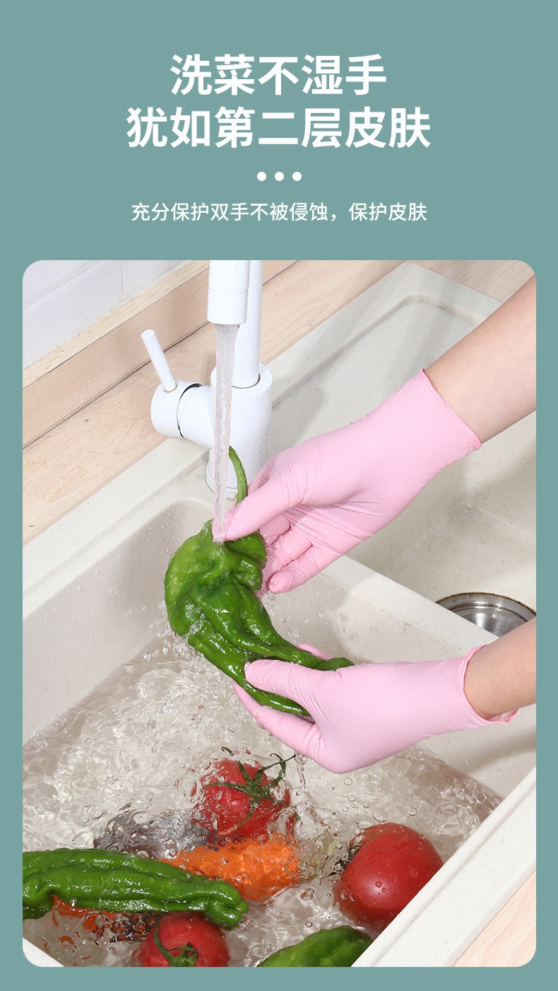 丁腈手套一次性食品级家务厨房加厚加长洗碗手套防水防油清洁手套