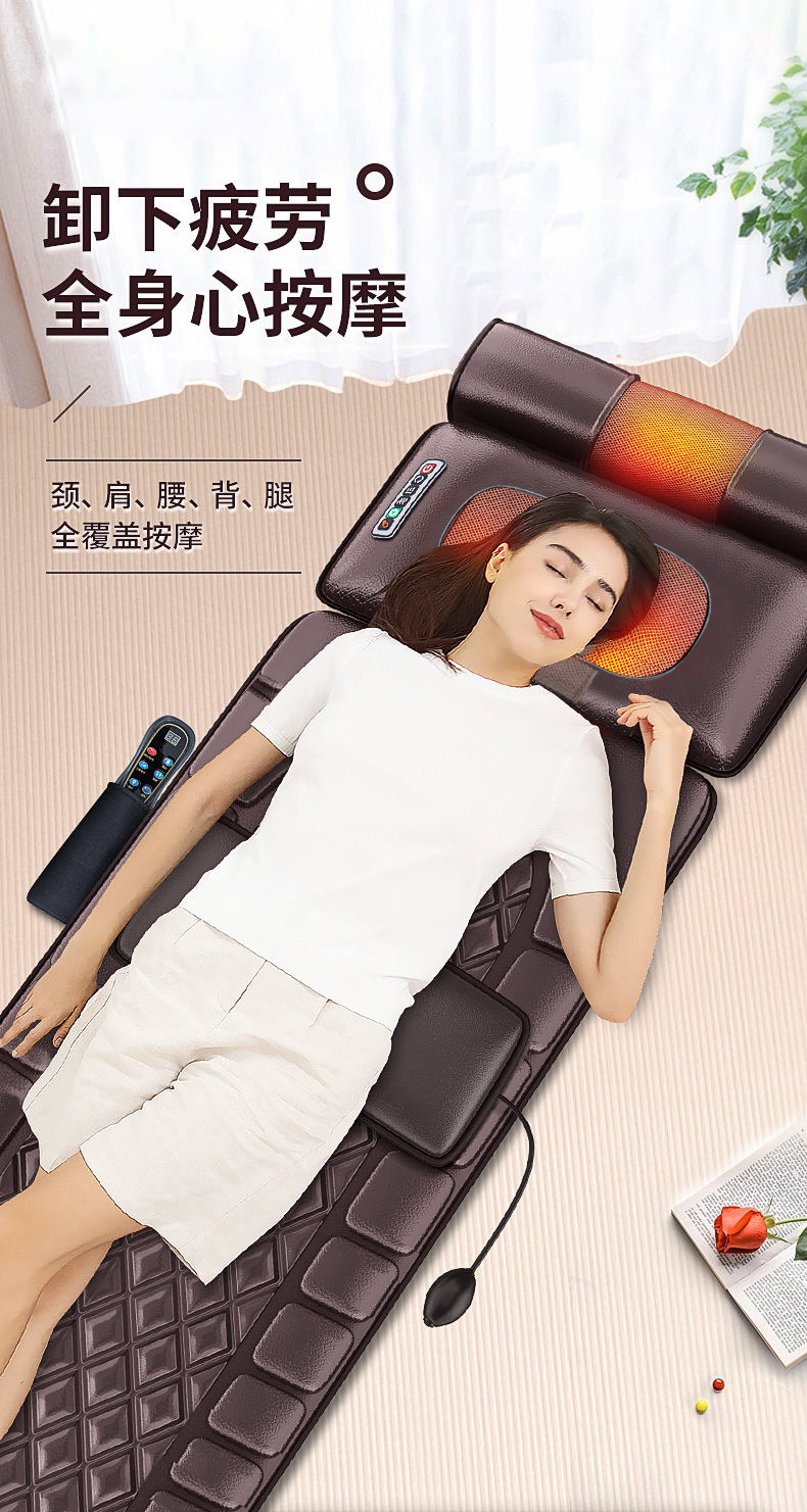 出口跨境按摩床垫全身多功能颈腰部震动揉捏家用智能加热按摩垫椅
