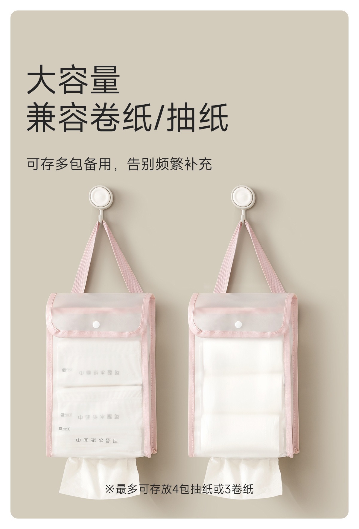 家用透明纸巾袋大容量宿舍浴室悬挂防水挂袋简约卫生间收纳纸巾袋 投诉