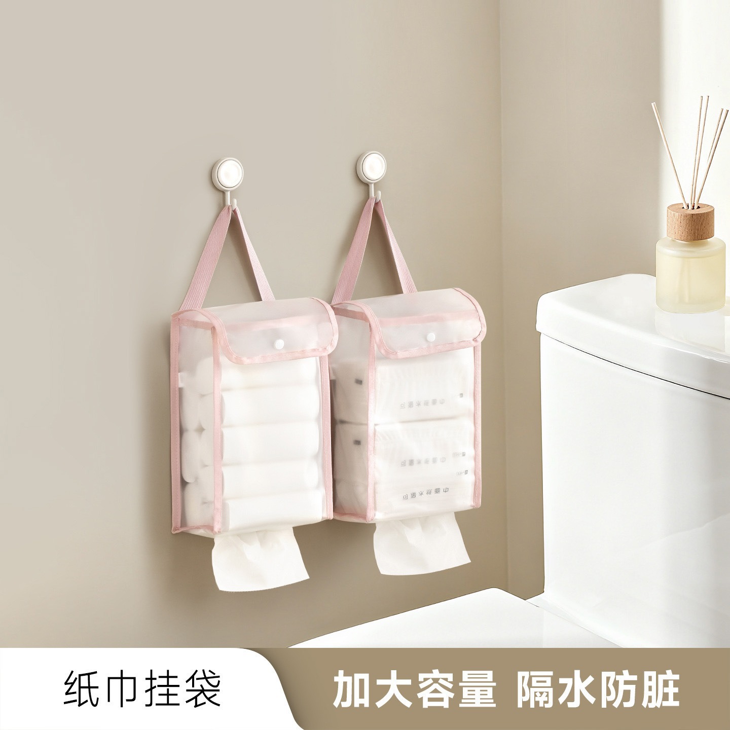 家用透明纸巾袋大容量宿舍浴室悬挂防水挂袋简约卫生间收纳纸巾袋