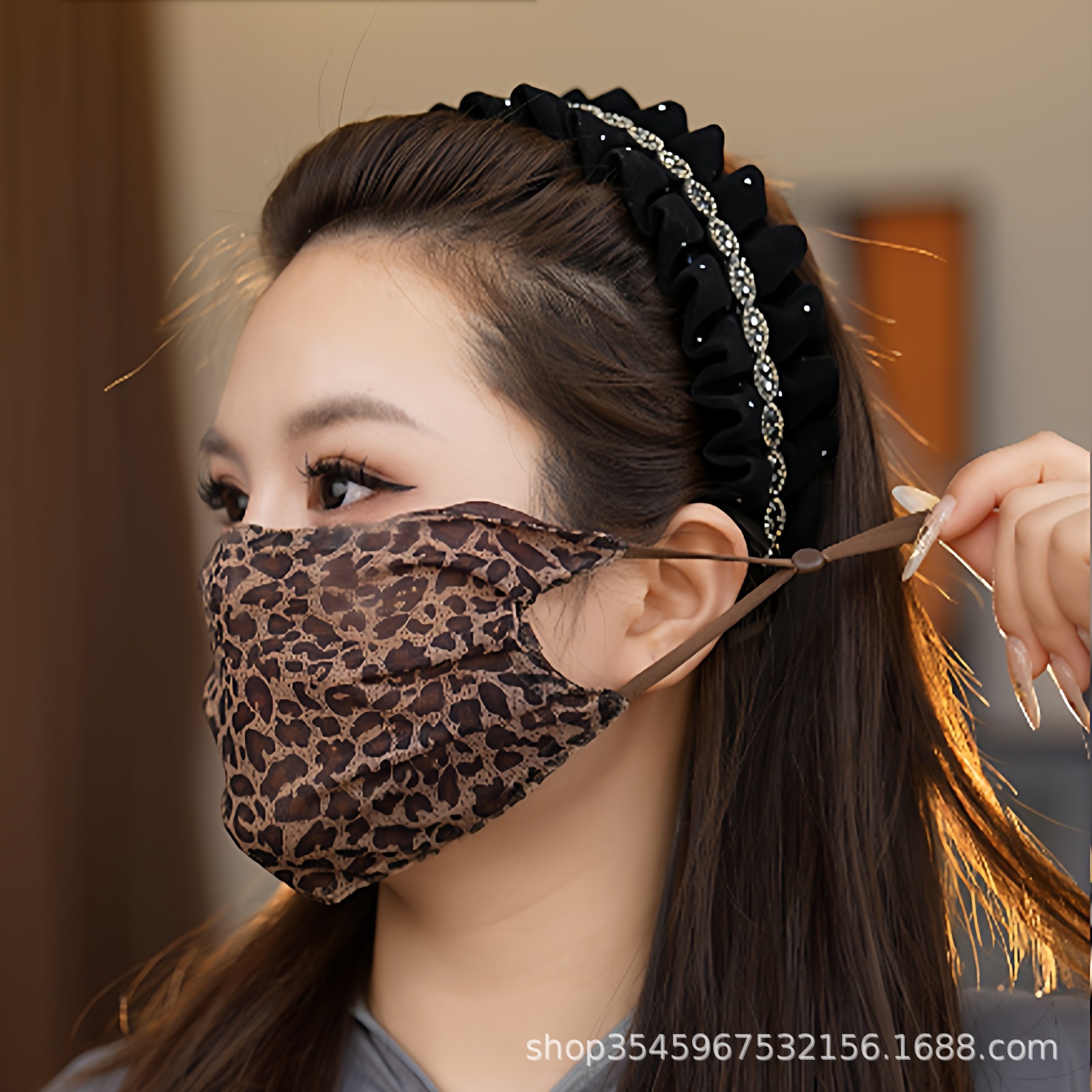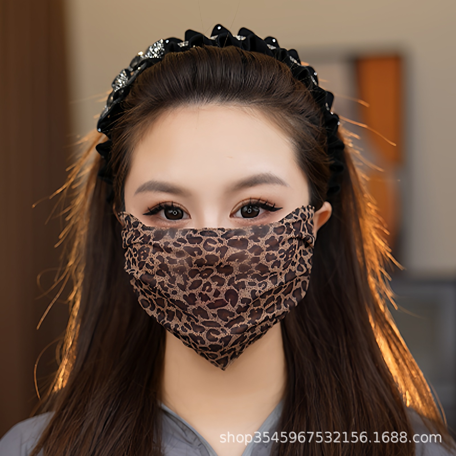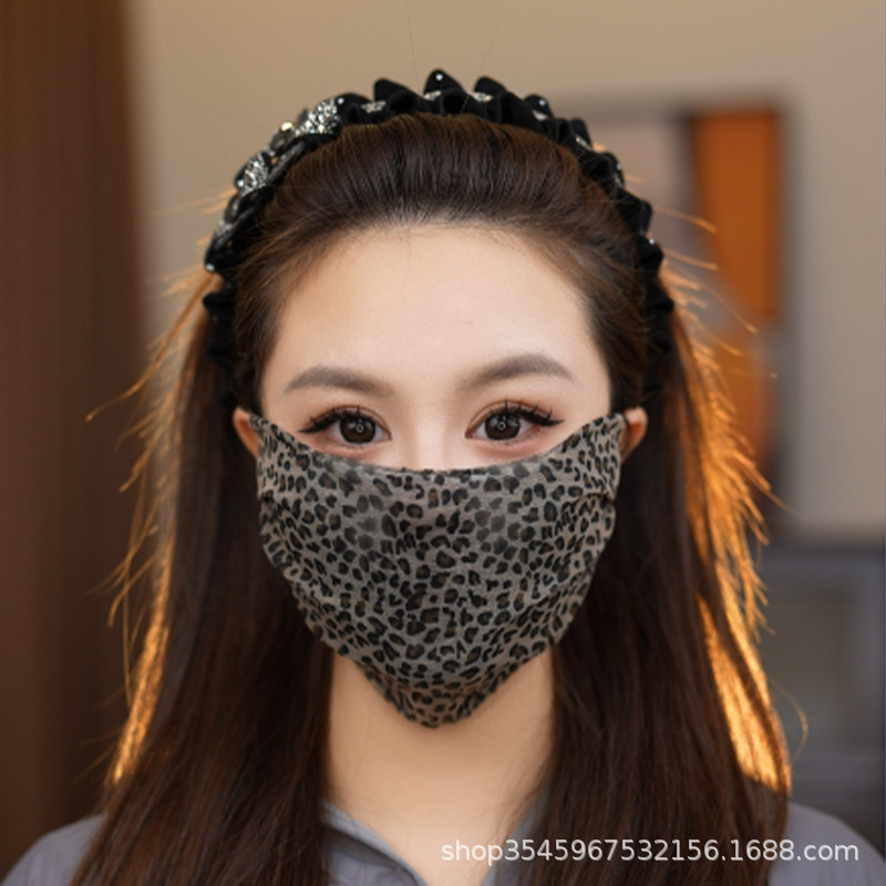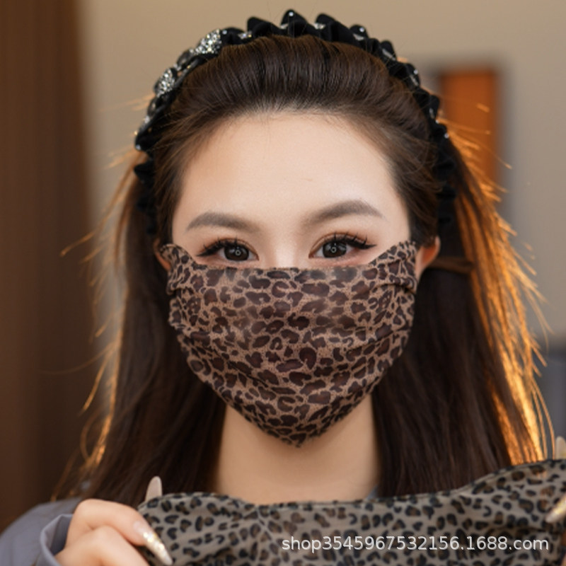 新款夏季时尚网红女蕾丝豹纹口罩亲肤透气可水洗网纱护眼角高颜值
