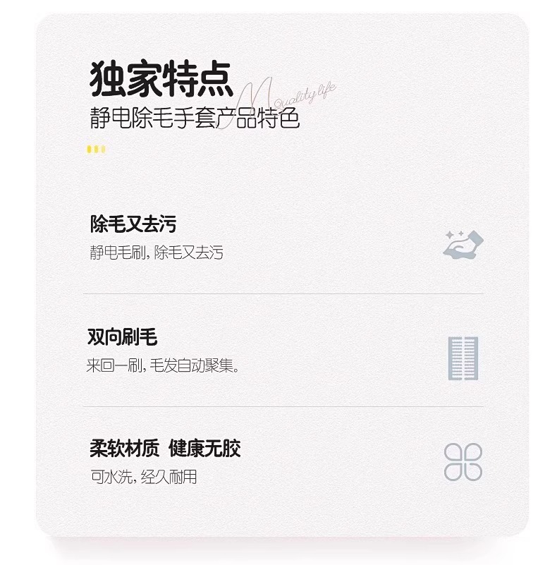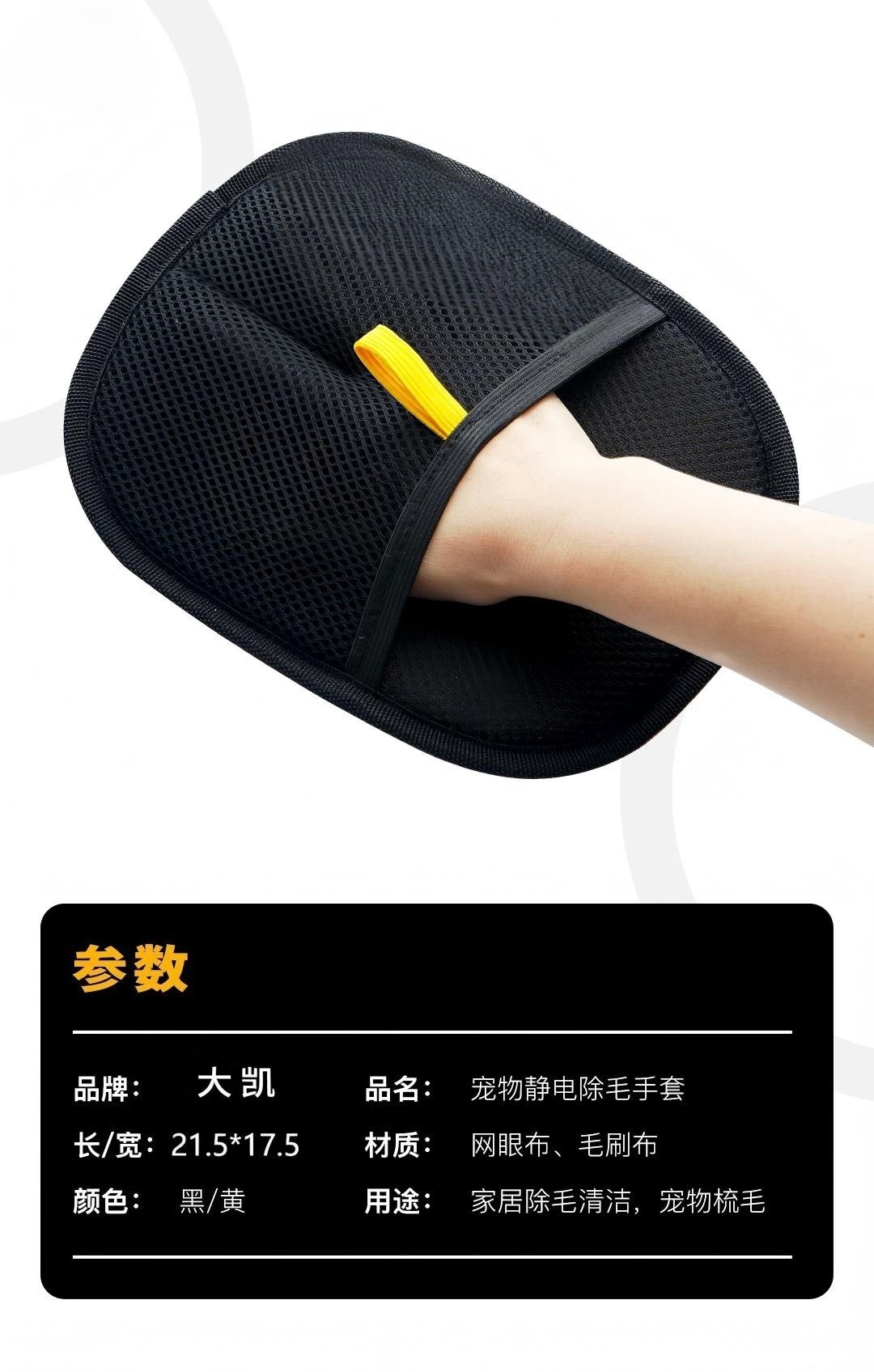 品牌: 其他 材质: 布 是否专利货源: 否 颜色: 静电除毛手套【黄标】21*17cm 是否跨境出口专供货源: 否 是否进口: 否 产地: 浙江 适用送礼场合: 其他 适用送礼关系: 朋友,孩子,同学,其他 适用节日: 元旦,七夕,万圣节,复活节,国庆节,儿童 是否属于礼品: 是,个人礼品 梳头形状: 方形 适用宠物类型: 中型犬 重量: 0.02 kg/个
