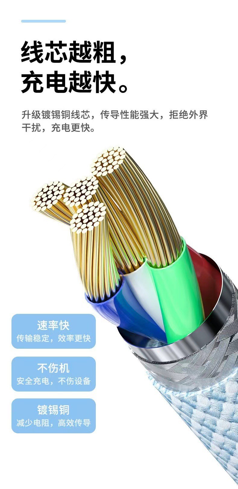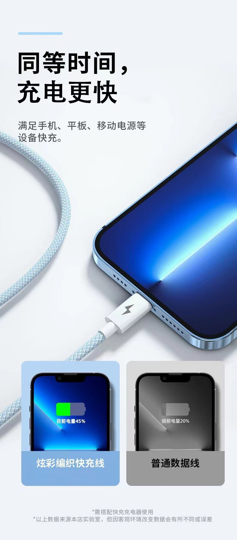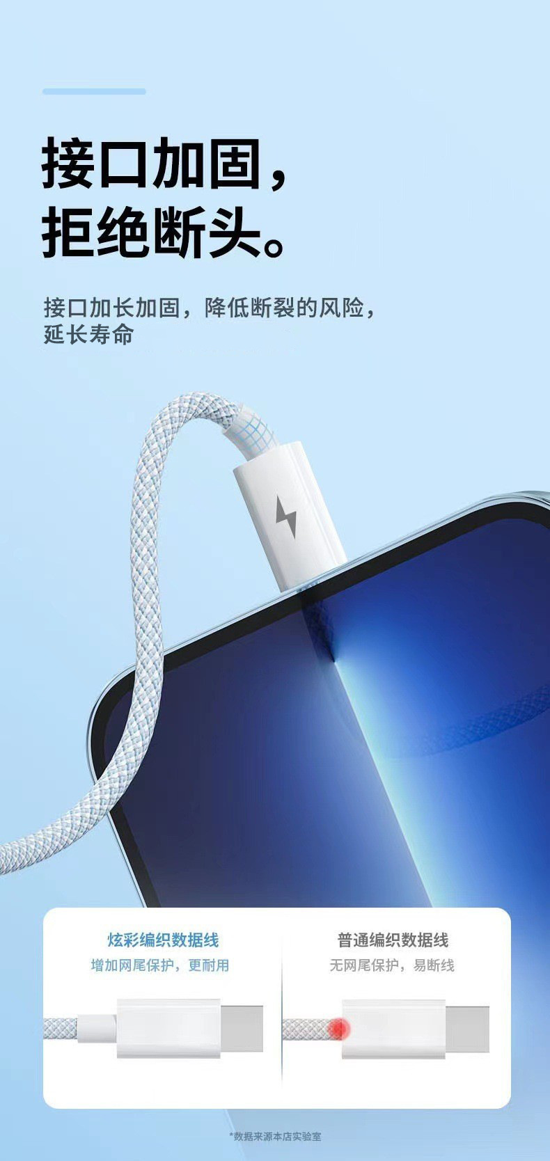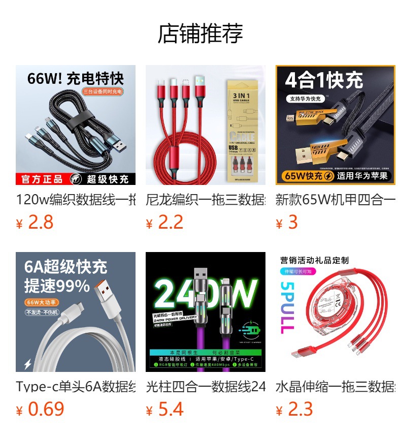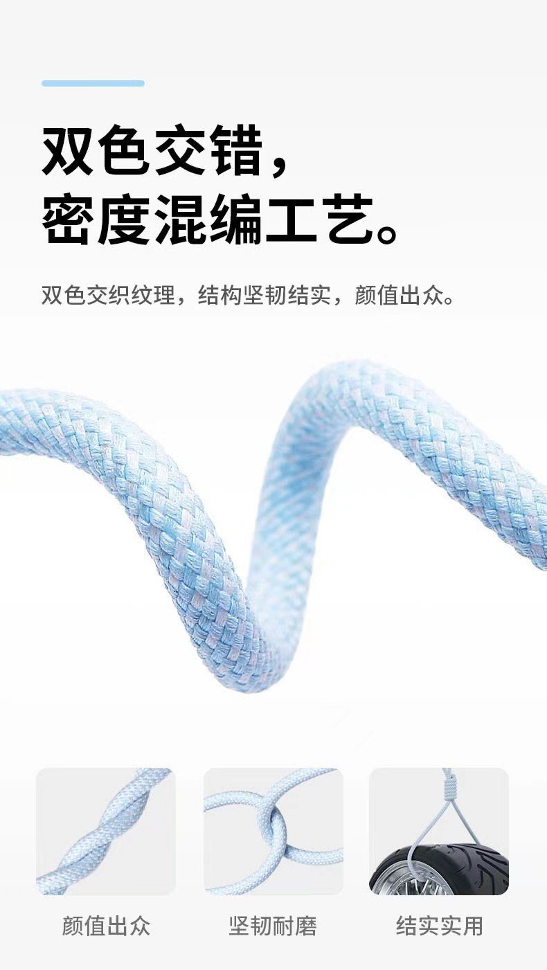 产品亮点:3A快充,一线三充,炫彩编织,接口加固防断裂,Type-c接口支持数据传输