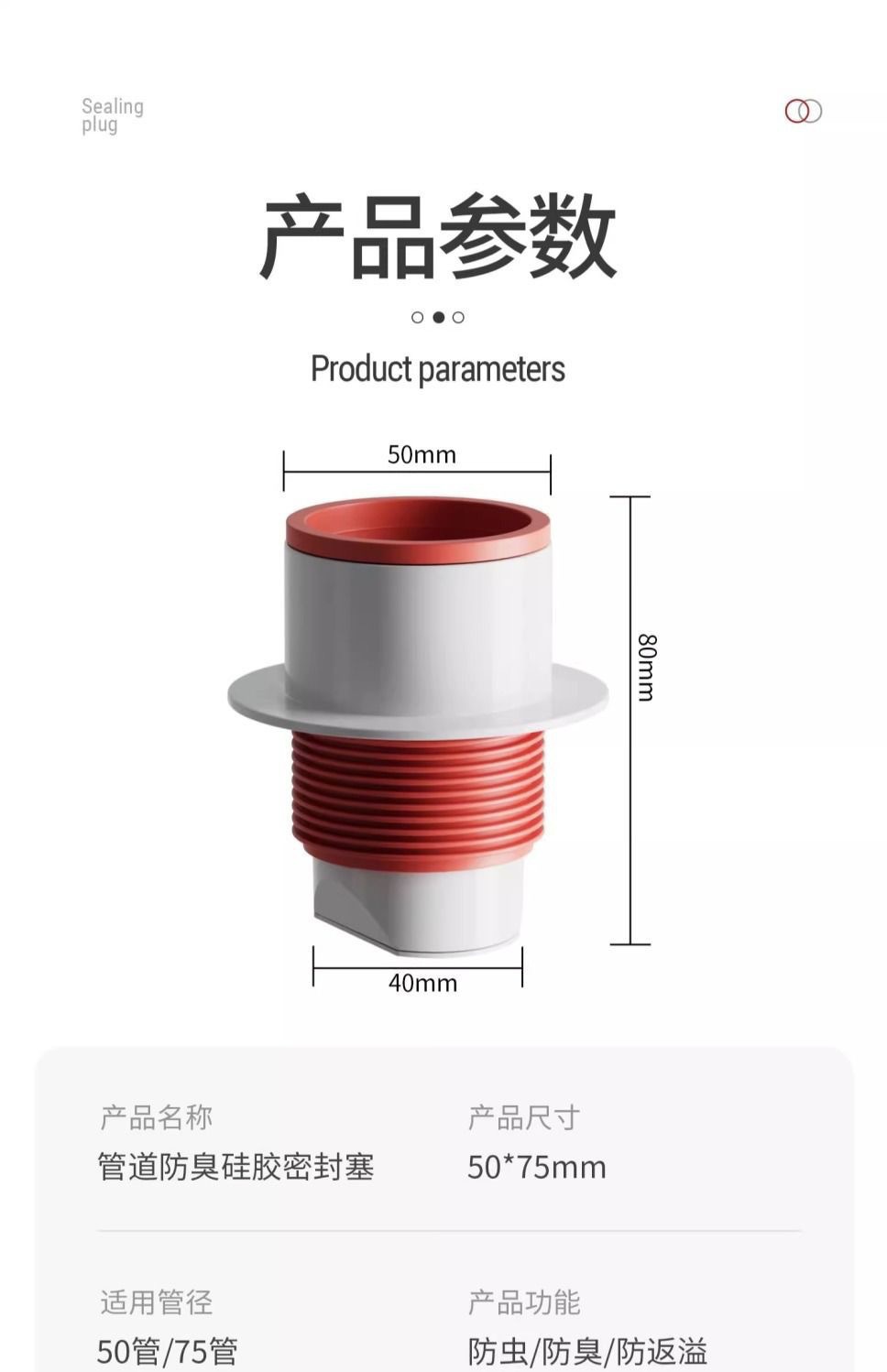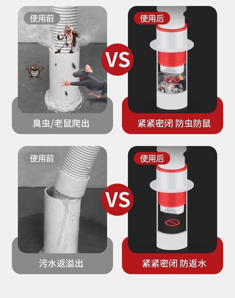 下水管防返臭地漏防臭神器密封塞厨房洗手池50管75倒灌反味堵口器 投诉