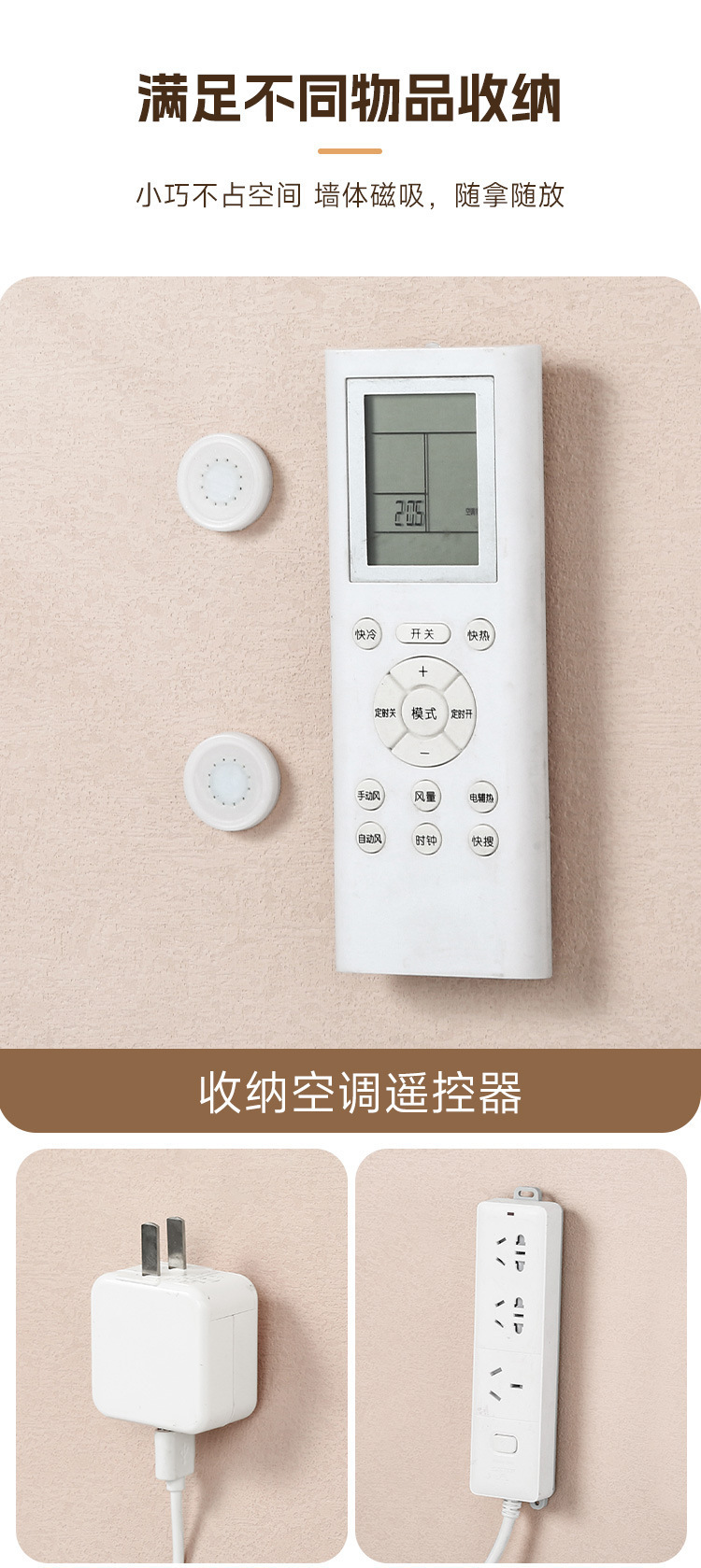 遥控器磁吸贴 粘贴壁挂式强力吸盘无痕贴插排免打孔钥匙墙上收纳