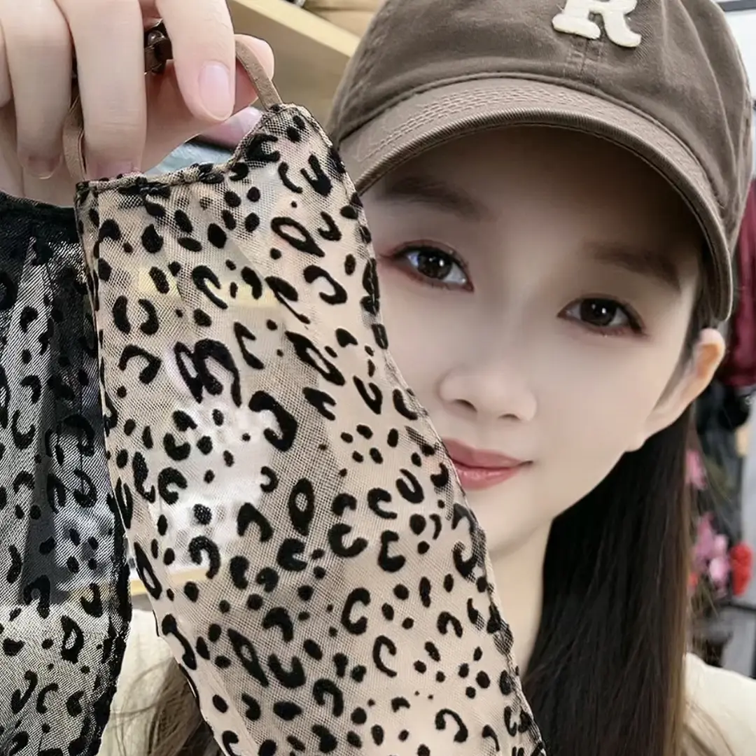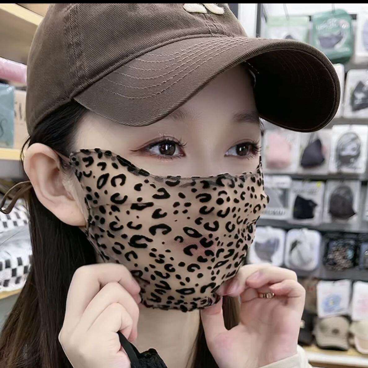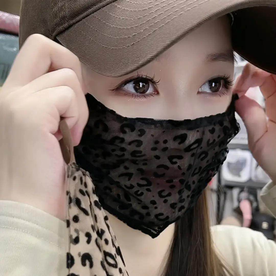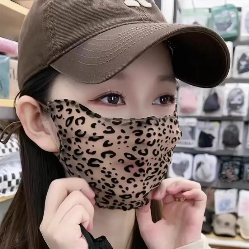 韩系豹纹防晒遮脸面罩女生薄冰丝透气口罩防紫外线户外护脸春夏