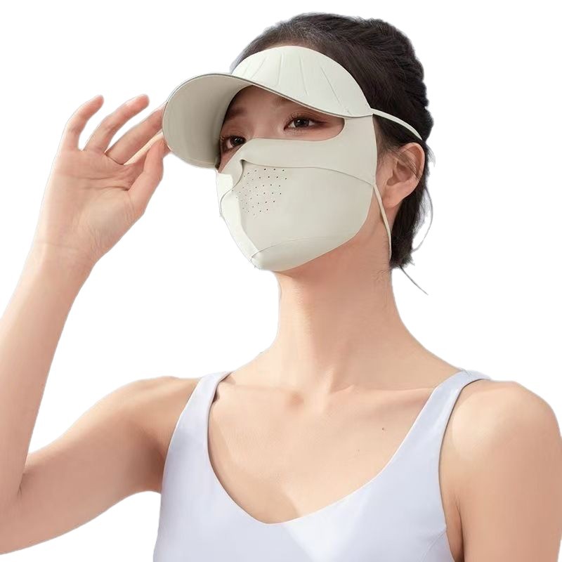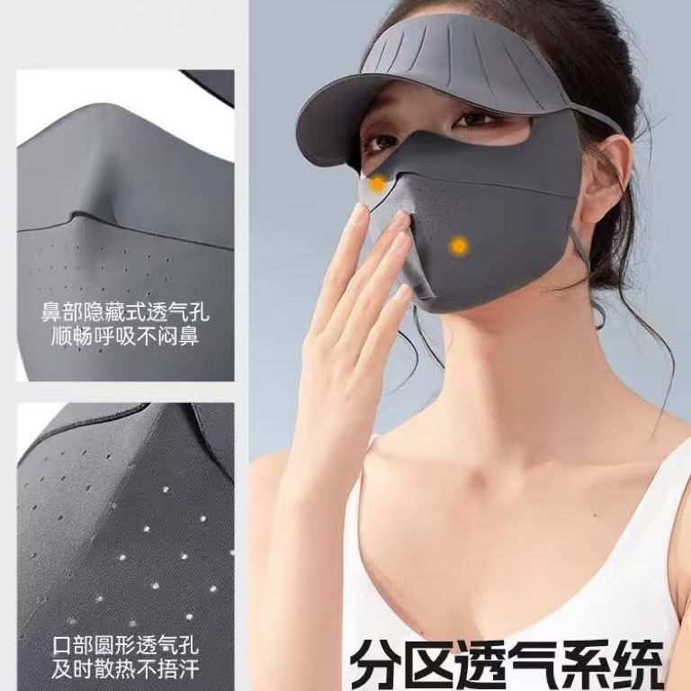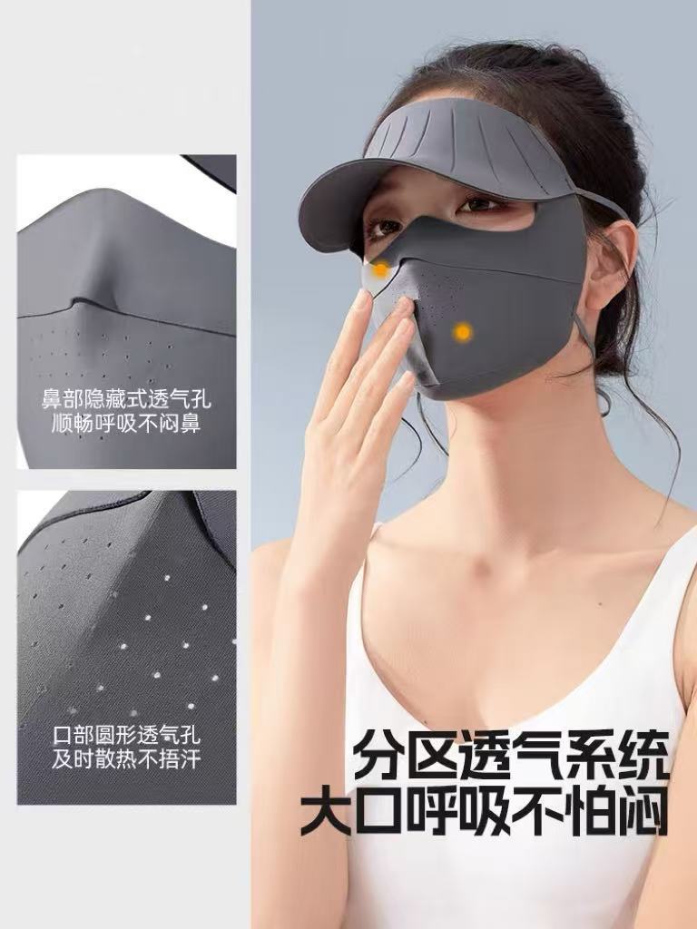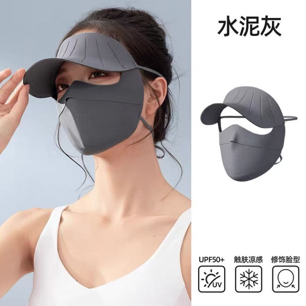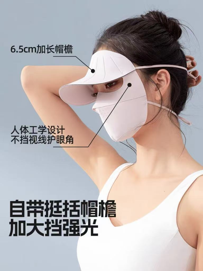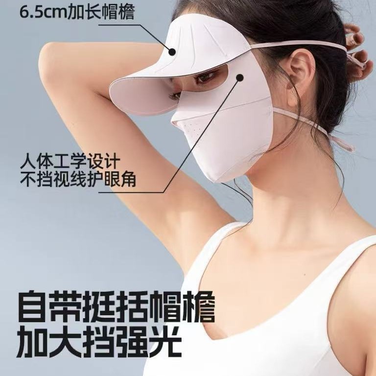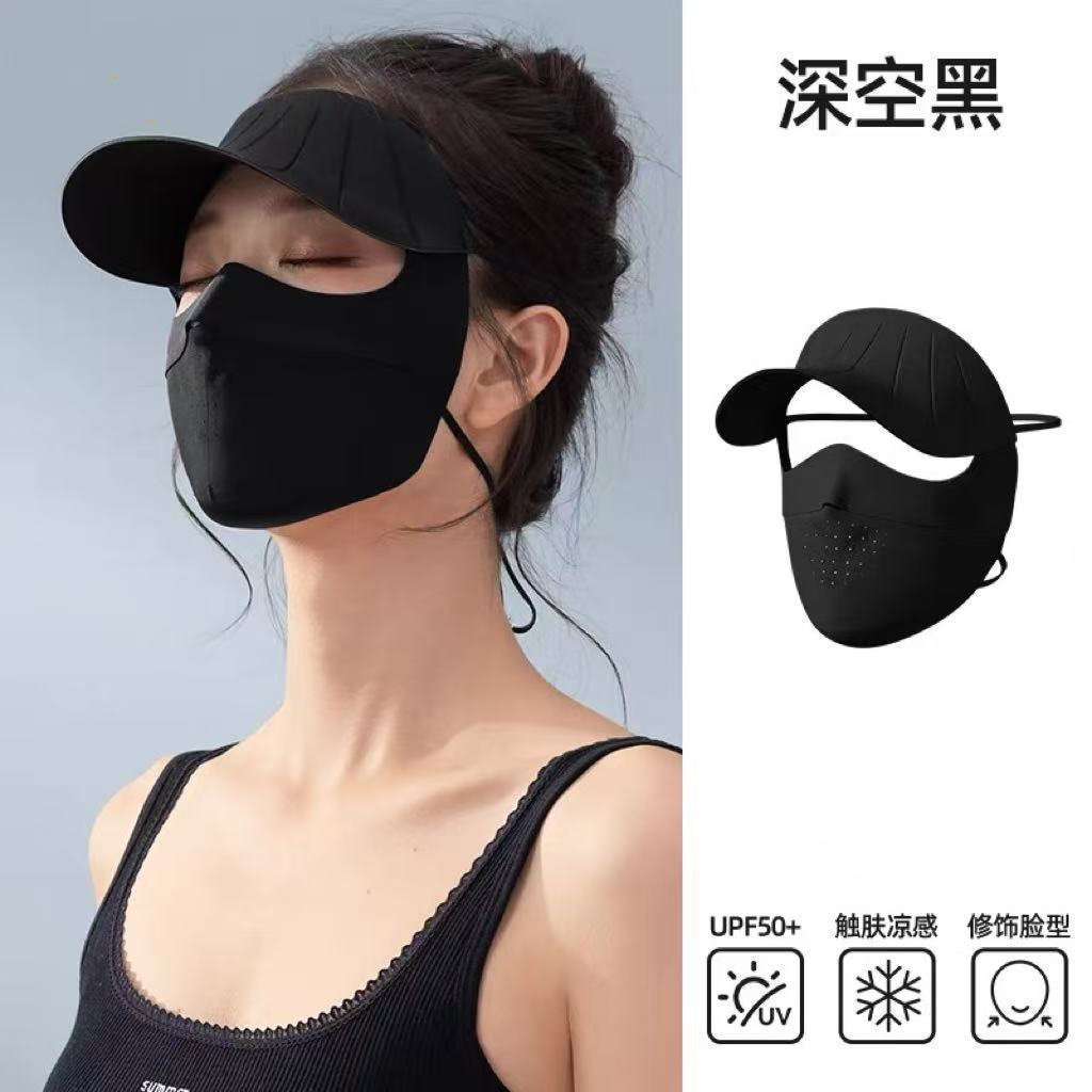 防紫外线全脸面罩女冰丝防晒口罩护颈帽檐一体骑车户外防晒冰丝