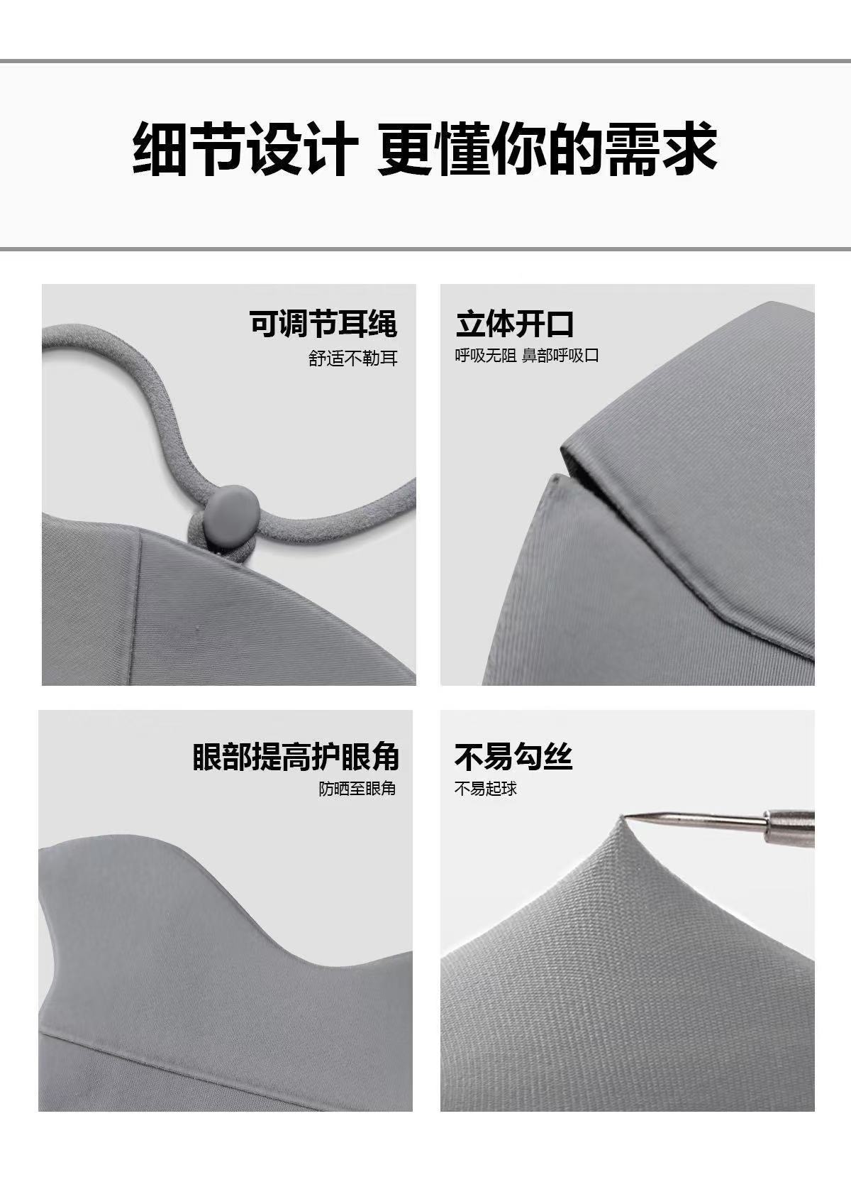 材质: 锦纶.氨纶 口罩款式: 挂耳式 功能: 防紫外线UPF50+ 适用性别: 中性/男女均可 图案: 单色 加工方式: 压花 加印LOGO: 不可以 适合季节: 冬季,秋季 适用送礼场合: 广告促销 加工定制: 否 产地: 浙江 颜色: 深灰色,浅灰色,粉色,安可拉红,深灰色 主要下游平台: 淘宝,亚马逊,速卖通 主要销售地区: 东南亚 有可授权的自有品牌: 否 是否跨境出口专供货源: 是 上市年份/季节: 2025年秋季 风格: 时尚通行保暖 无痕隐形口罩: 户外运动防冻口罩.防紫外线冬季面罩冬季加 外贸跨境口罩批发: “防静电口罩”“显脸小口罩”“防眼镜起雾 重量: 0.02 kg/件