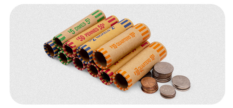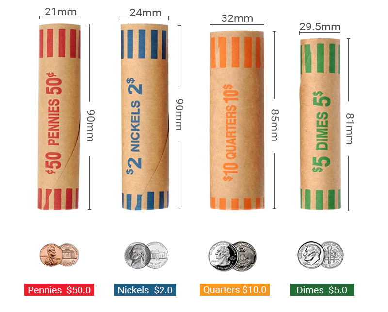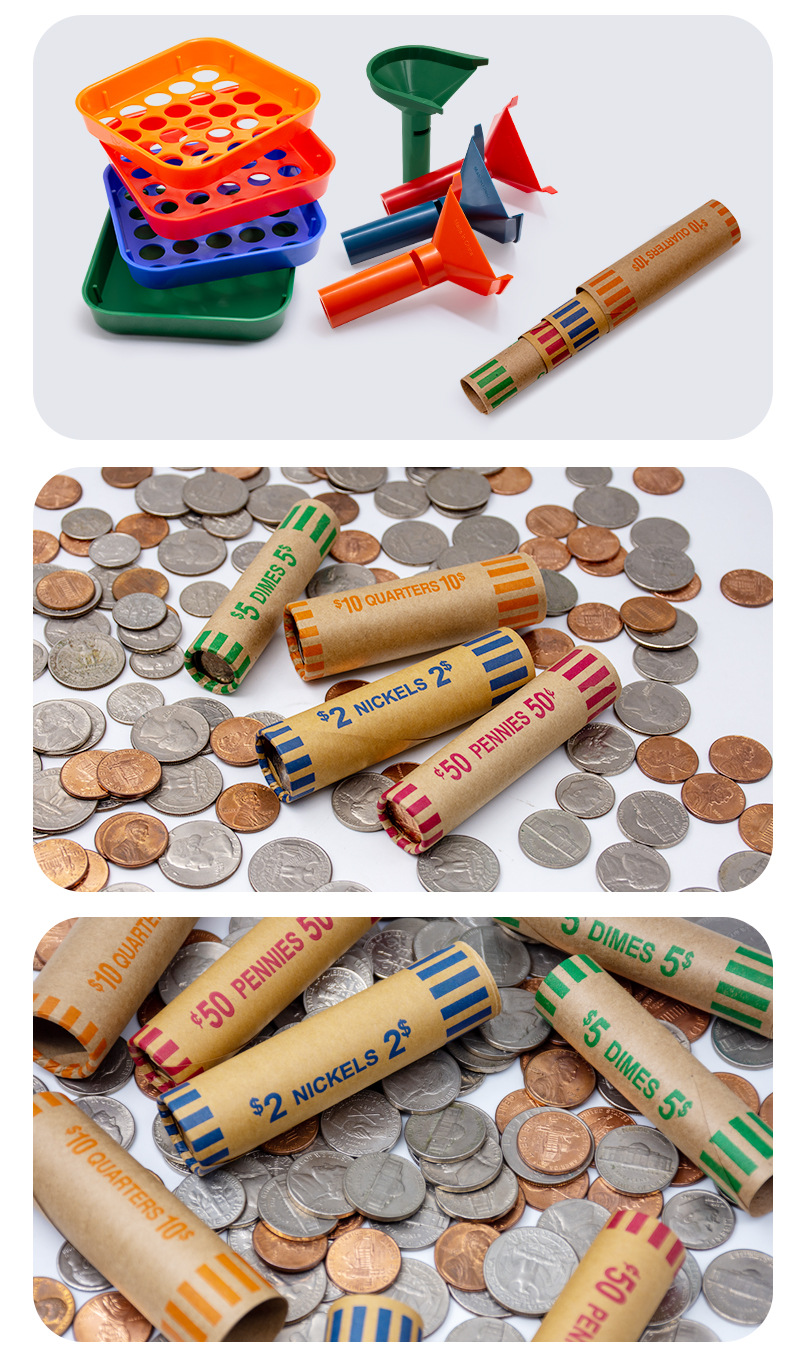 3)轻松分类和整理:我们的各种圆筒硬币包装纸经过精心设计,可对不同面额的硬币进行分类和存储。