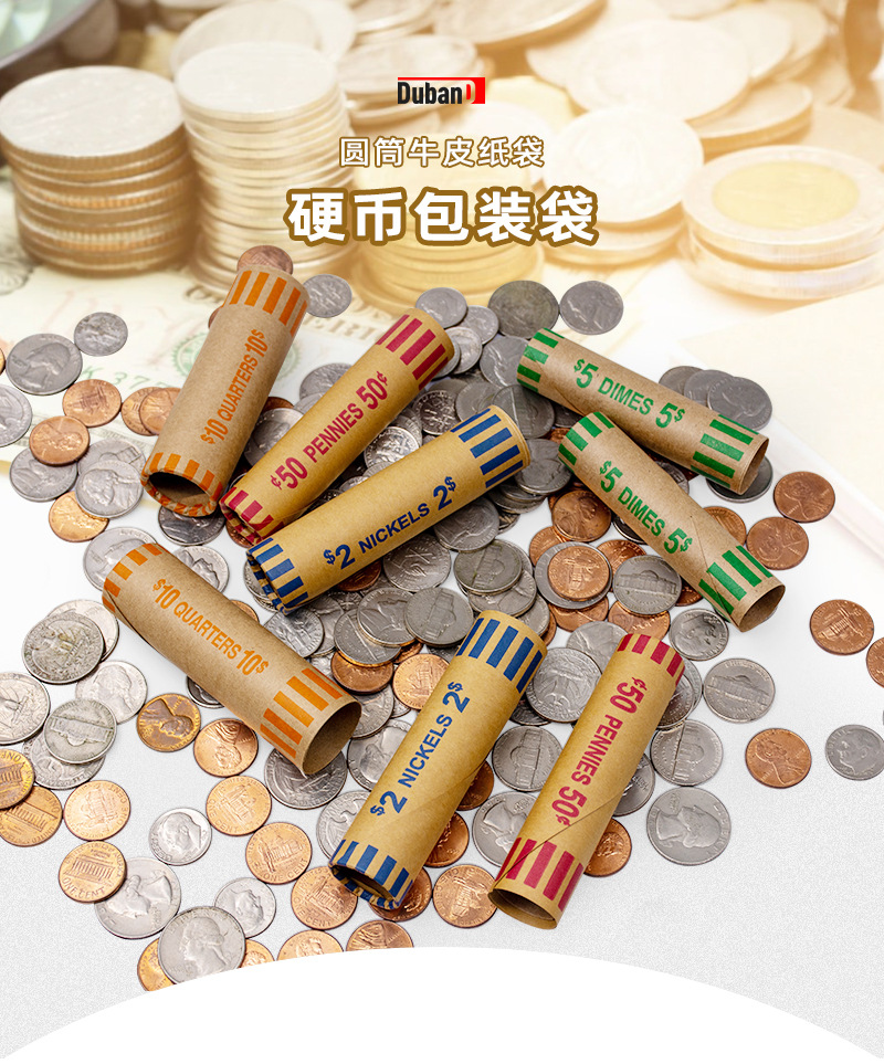 1)优质硬币卷耐用性:采用优质、坚固的牛皮纸制成,可防止撕裂和损坏确保持久使用;