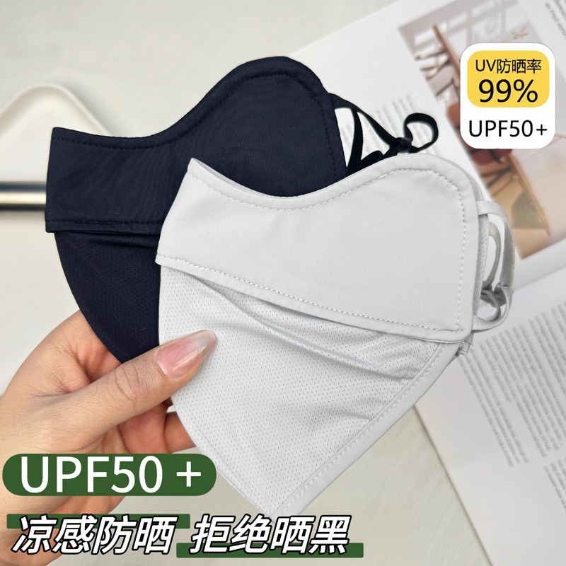 2025大脸显小防晒口罩女3D护颈面罩UPF50+防紫外线耳带显脸小