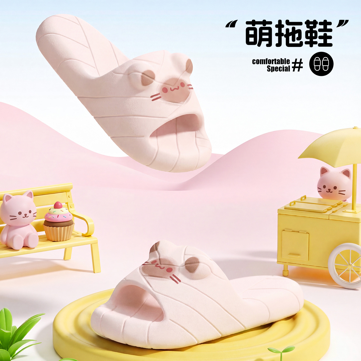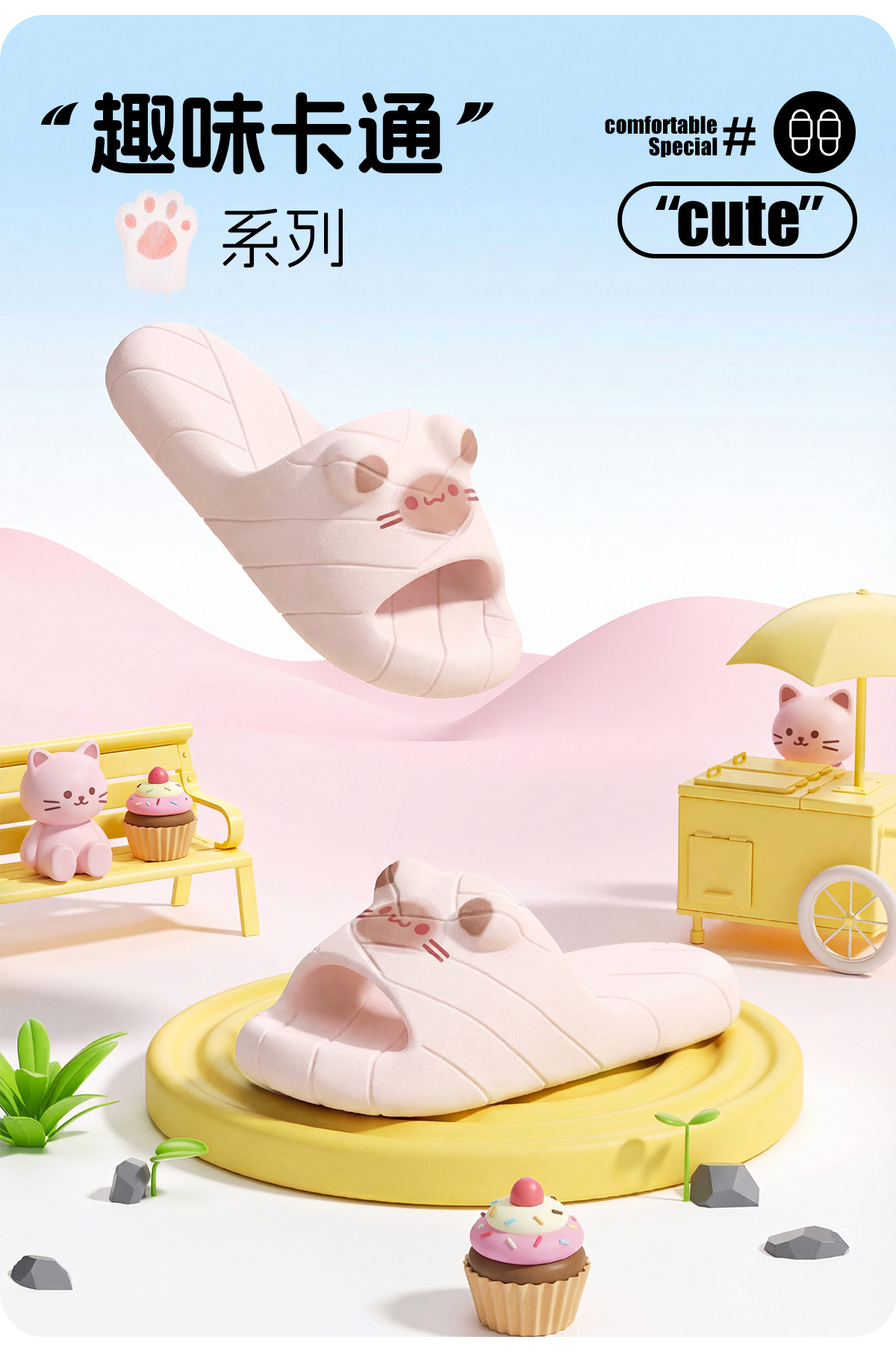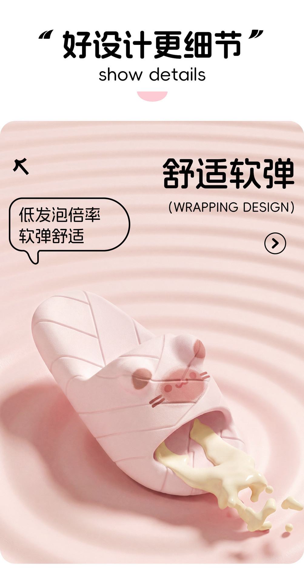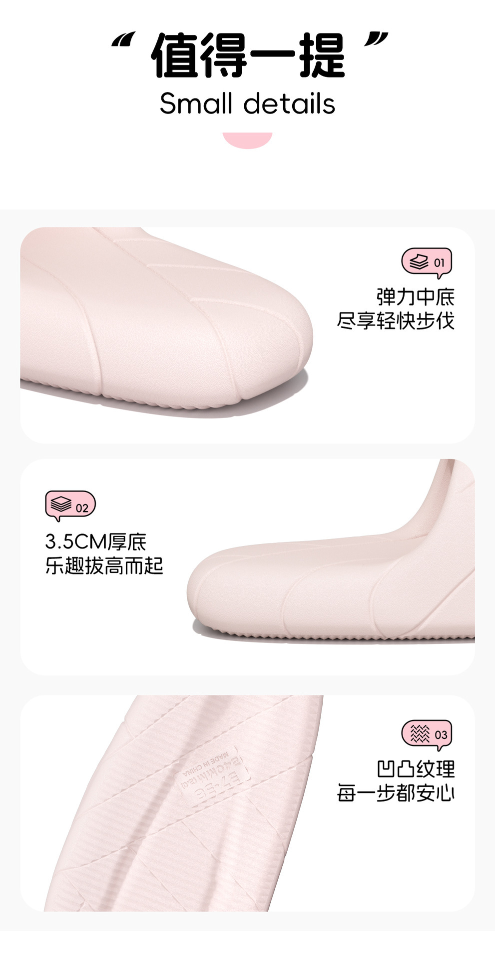 温馨提示:EVA材质拖鞋需避免高温暴晒,长时间高温会导致鞋子产生变形。
