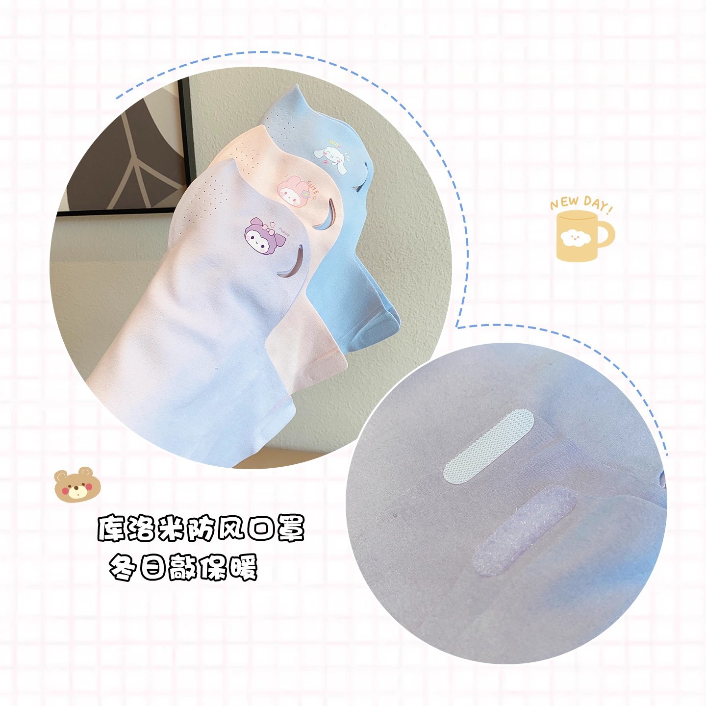 儿童冬季库洛米保暖面罩宝宝小学生上学防寒防风口罩防护冻伤脸罩