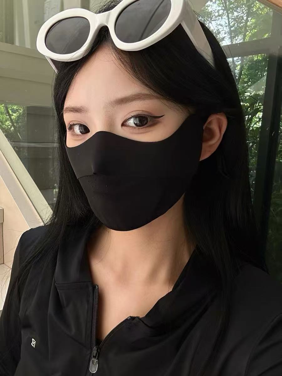 春夏轻薄丝滑网孔透气防晒口罩男女防紫外线骑行遮阳冰丝专用面罩