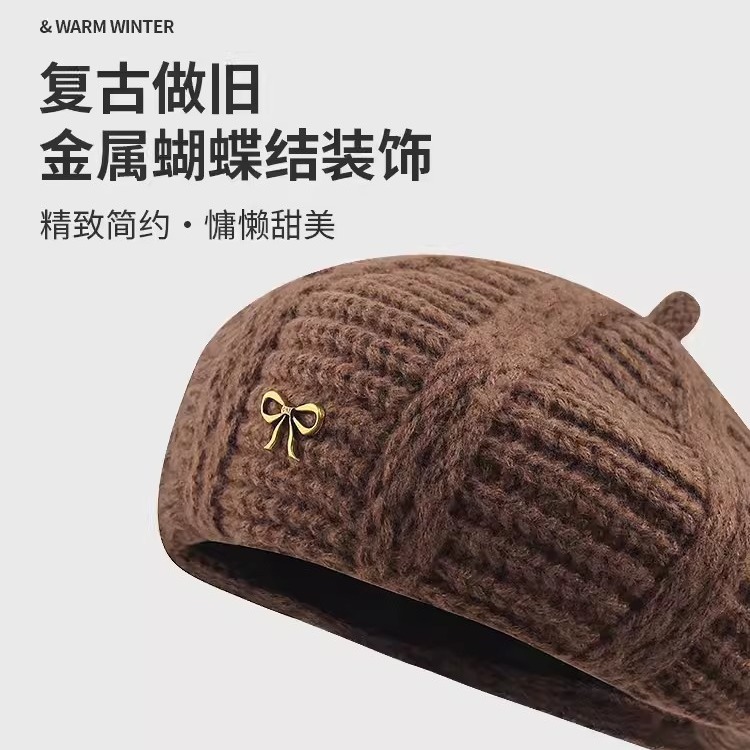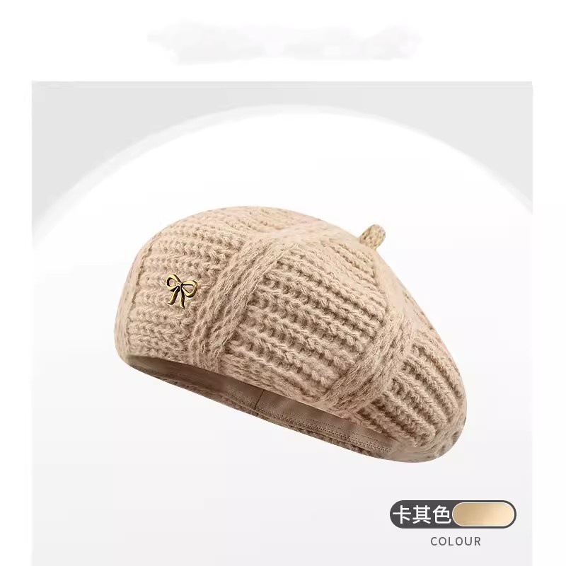 产品类别: 贝雷帽 功能: 保暖 面料名称: 腈纶 主面料成分: 腈纶 处理工艺: 针织,机绣 品牌: 其他 风格: 百搭,优雅,极简,休闲风,时尚OL,简约 货号: 9222-蝴蝶结标贝雷帽 流行元素: 蝴蝶结 适合季节: 冬季,春秋季 产地: 金华 帽顶款式: 圆顶 帽檐款式: 无檐 颜色: 黑色,红色,米白色,卡其色 是否跨境出口专供货源: 是 主要下游平台: 亚马逊,wish,快手,速卖通,独立站, 主要销售地区: 东南亚 上市年份/季节: 2024年秋季 主面料成分含量: 11%(含)-20%(含) 风格分类: 时尚通勤 重量: 0.02 kg/顶