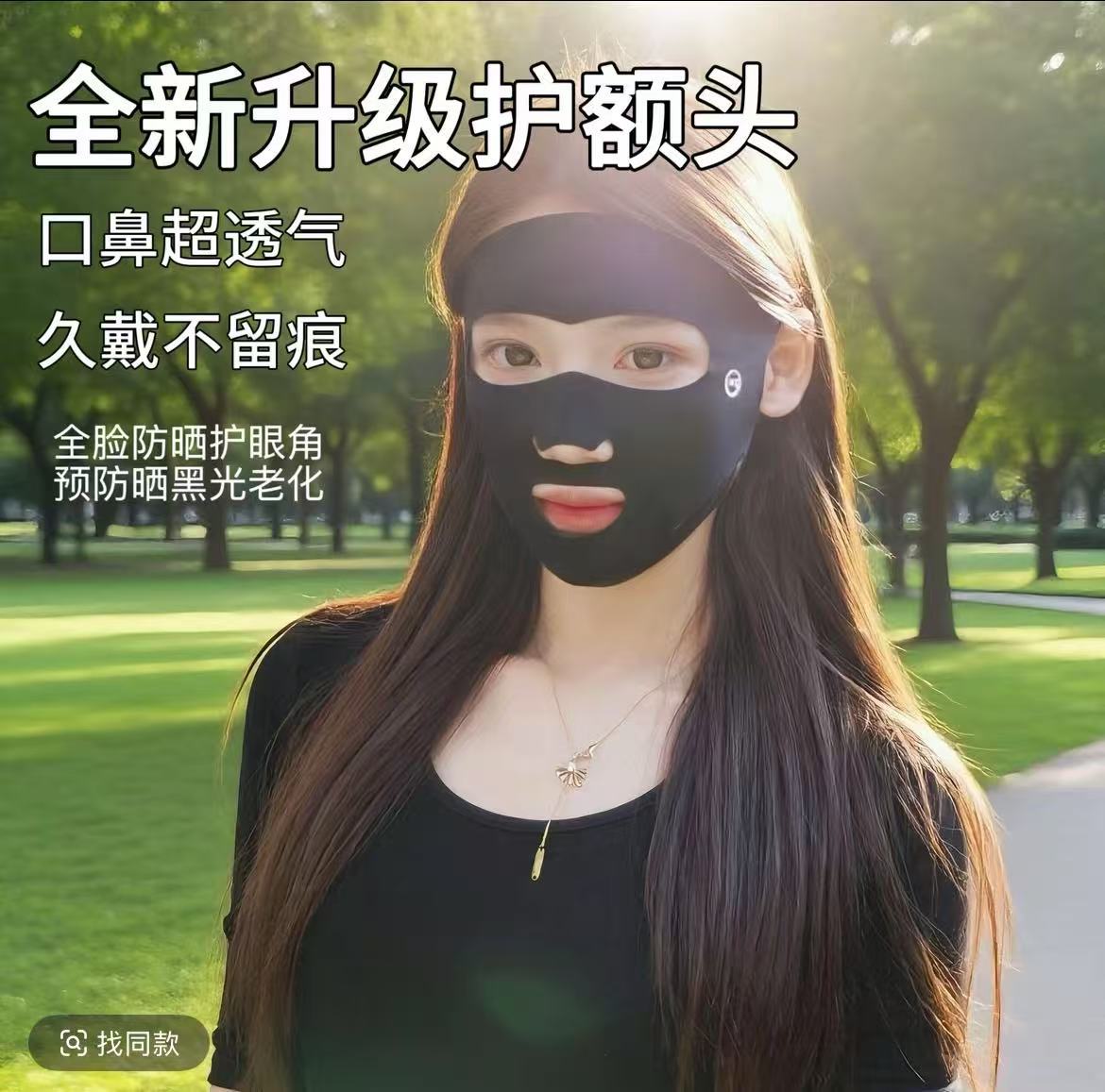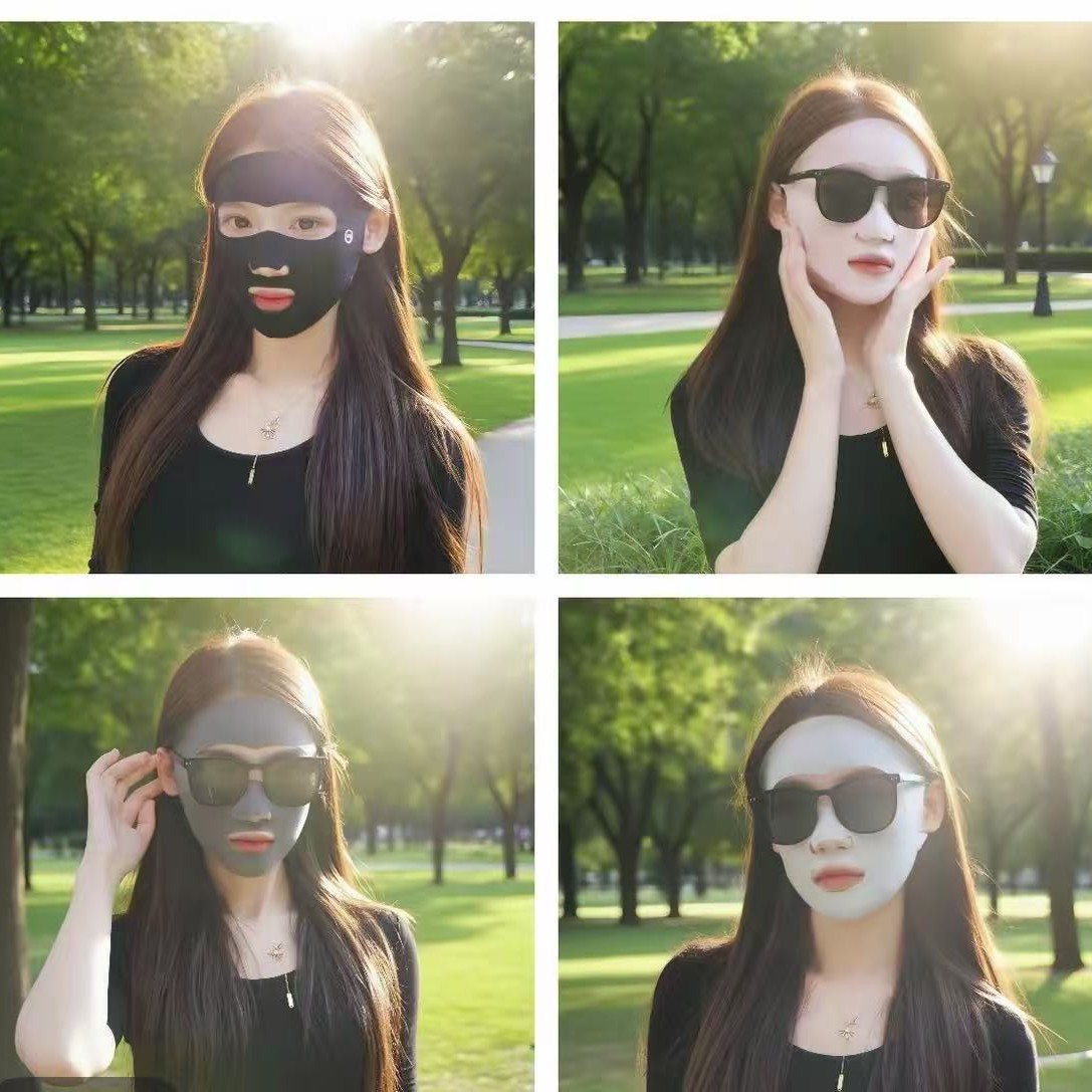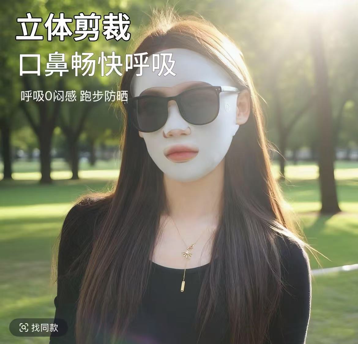 全脸防护无痕防晒口罩跑步运动冰丝面罩漏嘴鼻透气护眼角脸基尼女