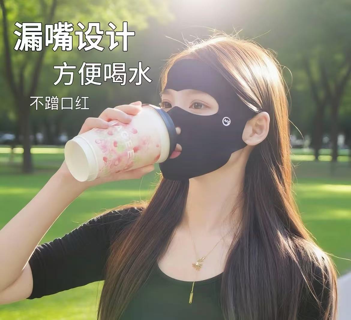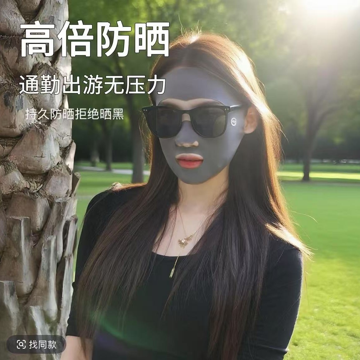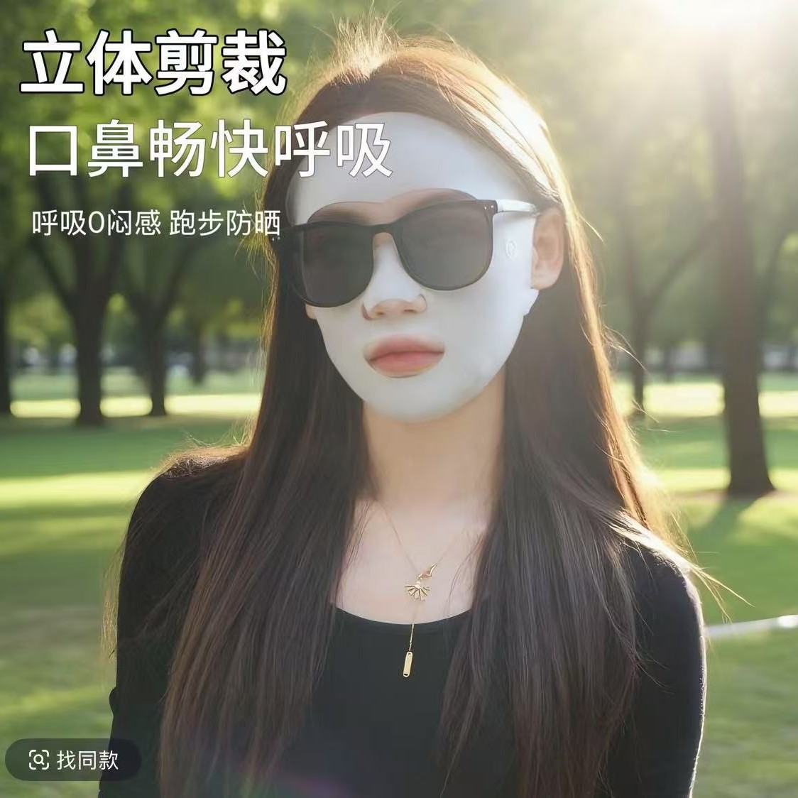 全脸防护无痕防晒口罩跑步运动冰丝面罩漏嘴鼻透气护眼角脸基尼女