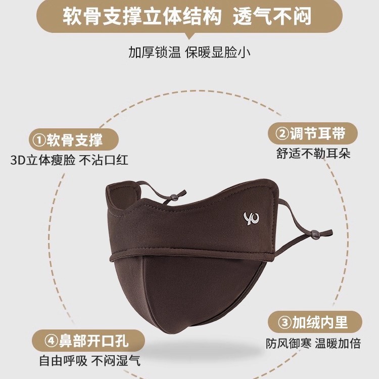 材质: 锦纶 口罩款式: 挂耳式 功能: 防尘 品牌: 其他 适用性别: 中性/男女均可 图案: 纯色 加工方式: 印花 加印LOGO: 不可以 适合季节: 冬季,春季,秋季 适用送礼场合: 广告促销 加工定制: 是 货号: 快乐保暖带标口罩 产地: 义乌 颜色: 摩卡灰,曜夜黑,棕咖色,雾粉色 主要下游平台: 淘宝,京东,PDD,亚马逊,快手,SHE 是否跨境出口专供货源: 否 尺码: 均码 上市年份/季节: 2024年春季 风格: 百搭,加厚。防风寒。护脸。显脸小 重量: 0.02 kg/个