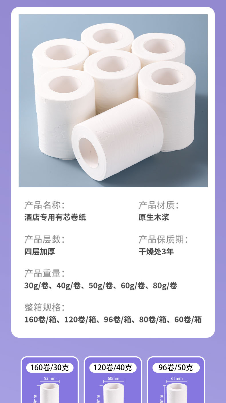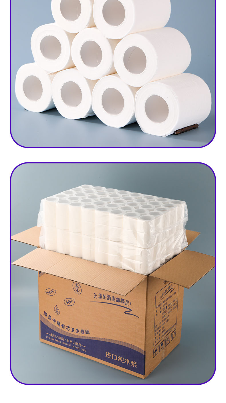 商用宾馆酒店客房用纸有芯卷纸整箱批发厕纸卫生纸独立包装小卷纸 English | 投诉