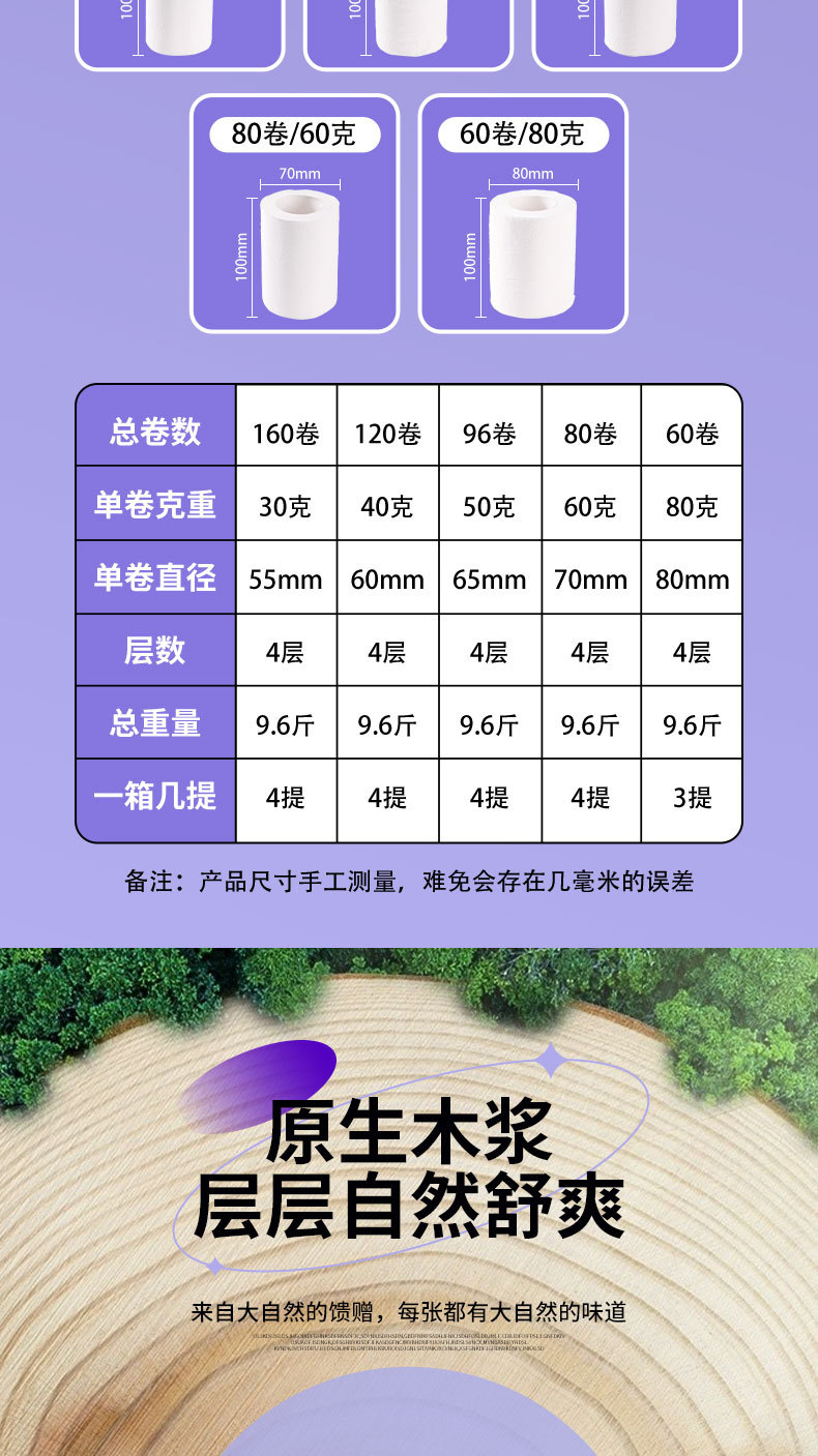 温馨提示:本链接下单产品请按照成箱拿,30g的160卷/箱,40g的120卷/箱,50g的96卷/箱,60g的80卷/箱,80g的60卷/箱,下单时请按照对应的整数倍来拍,否则不发货,例:下单30g的,拍下160卷到320卷之间也只发160卷,拍下320卷到480卷之间,也只发320卷,装箱规格限制,请体谅!
