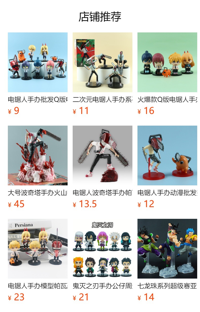 材质: PVC 品牌: 其他 包装方式: 其他 规格: 11 适用年龄: 成年(18岁及以上) 产地: 广东 是否有动漫形象: 否 货号: djr 是否有导购视频: 是 是否拼装: 是 是否专供外贸: 否 3C配置类别: 14岁以上的玩具 颜色: 战斗电锯人6款 主要下游平台: 亚马逊,wish,速卖通 主要销售地区: 南美,东南亚,北美,东北亚 有可授权的自有品牌: 否 是否跨境出口专供货源: 是 重量: 0.5 kg/套