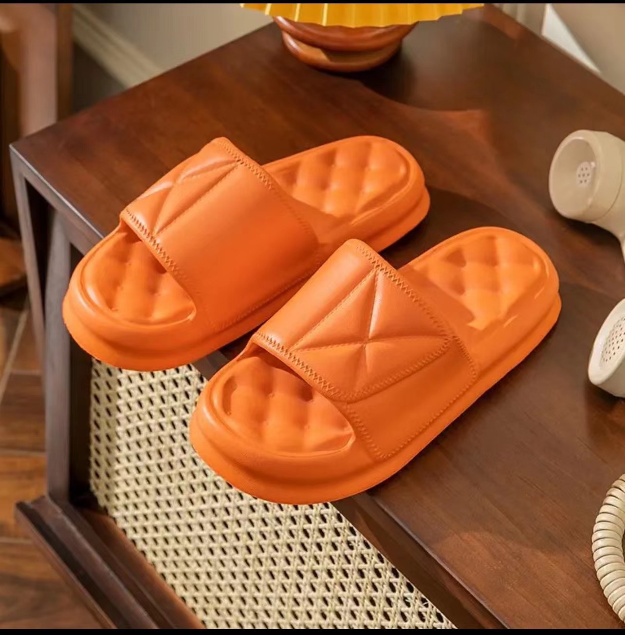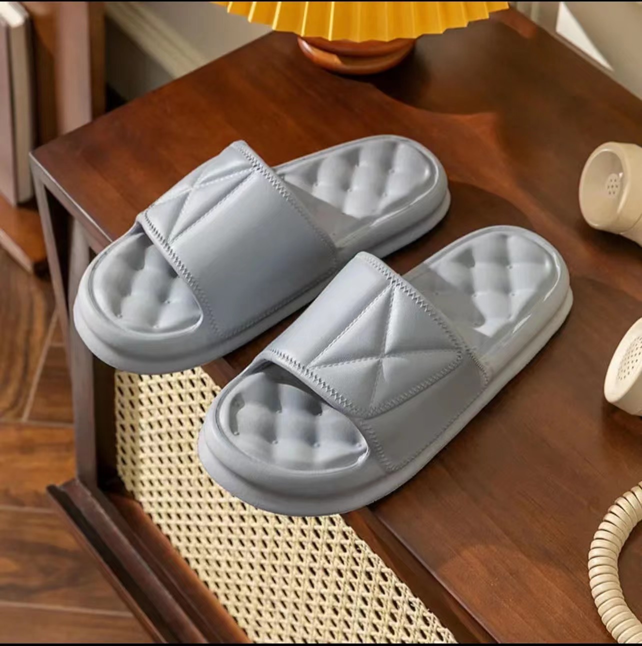 温馨提示:EVA材质拖鞋需避免高温暴晒,长时间高温会导致鞋子产生变形。