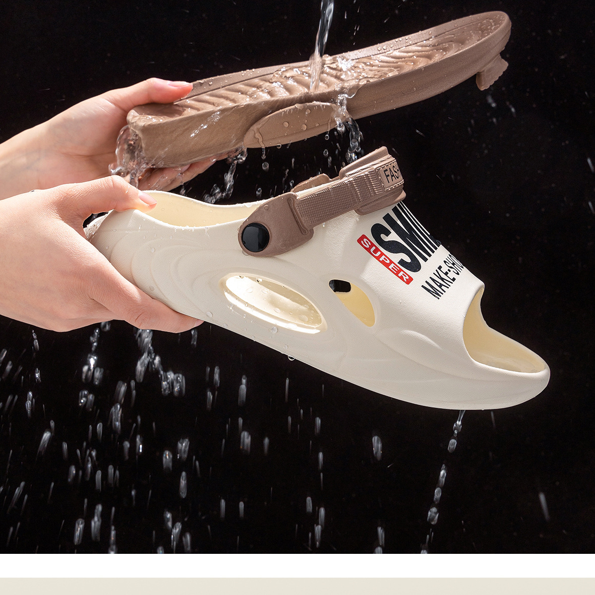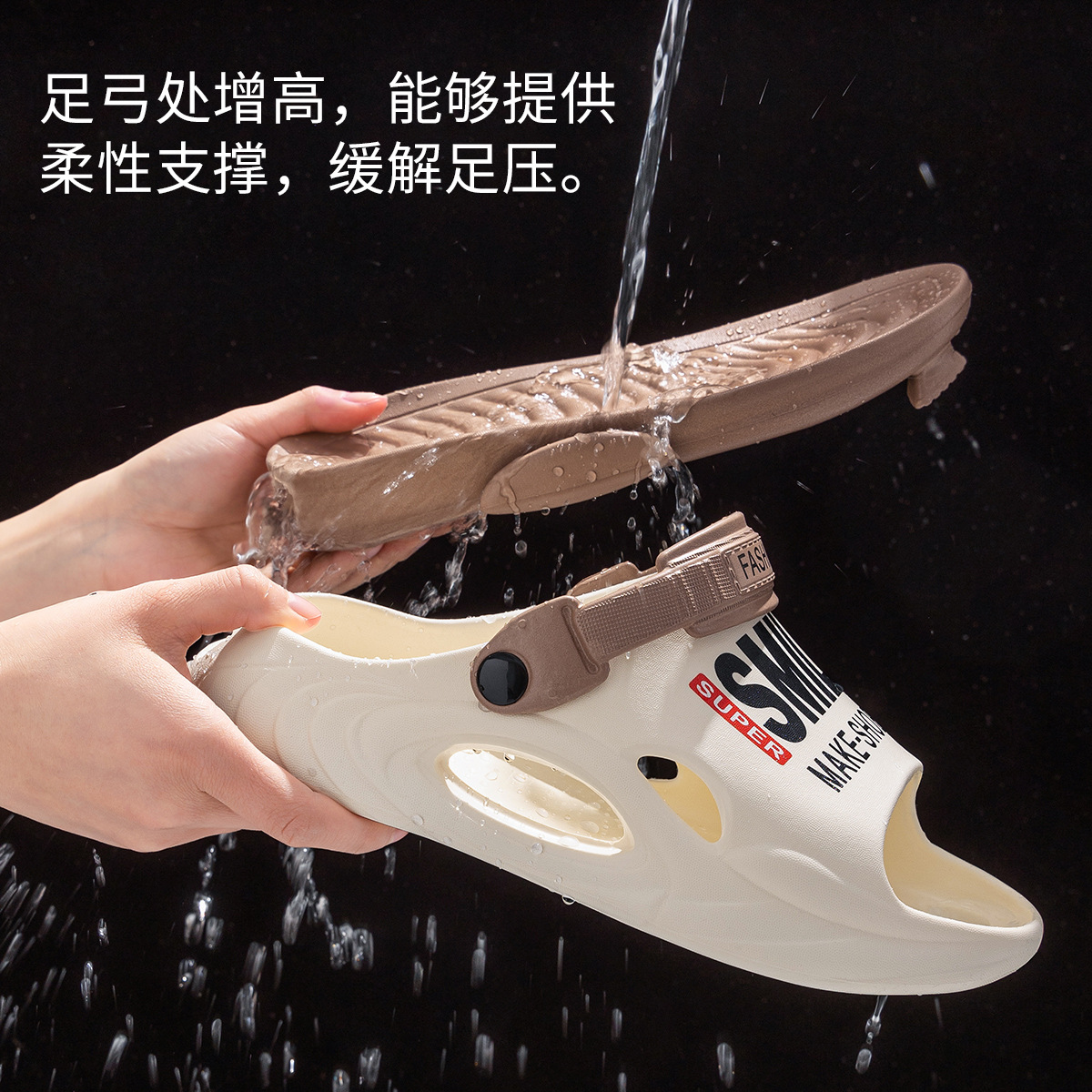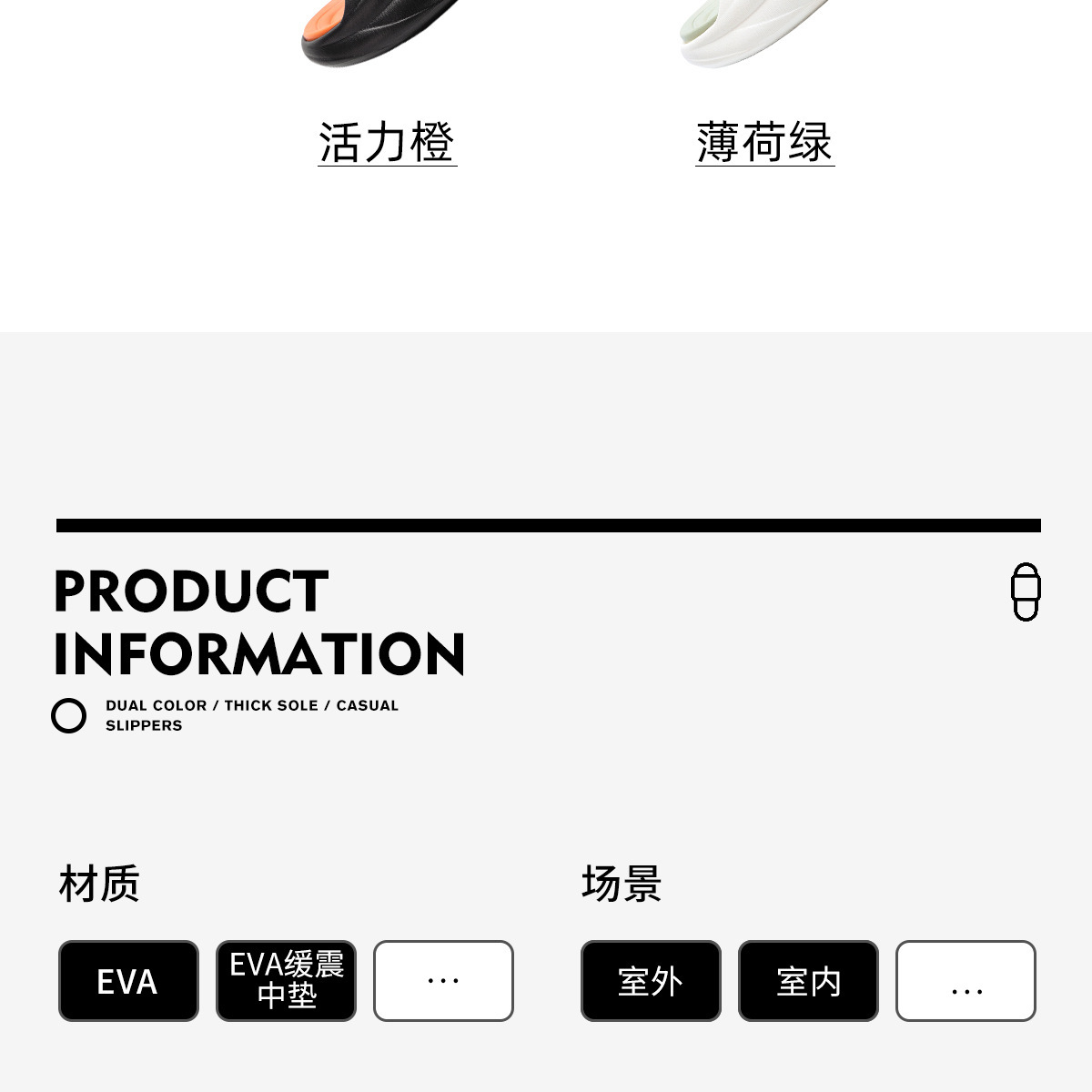 温馨提示:EVA材质拖鞋需避免高温暴晒,长时间高温会导致鞋子产生变形。