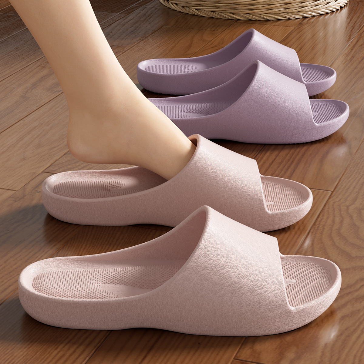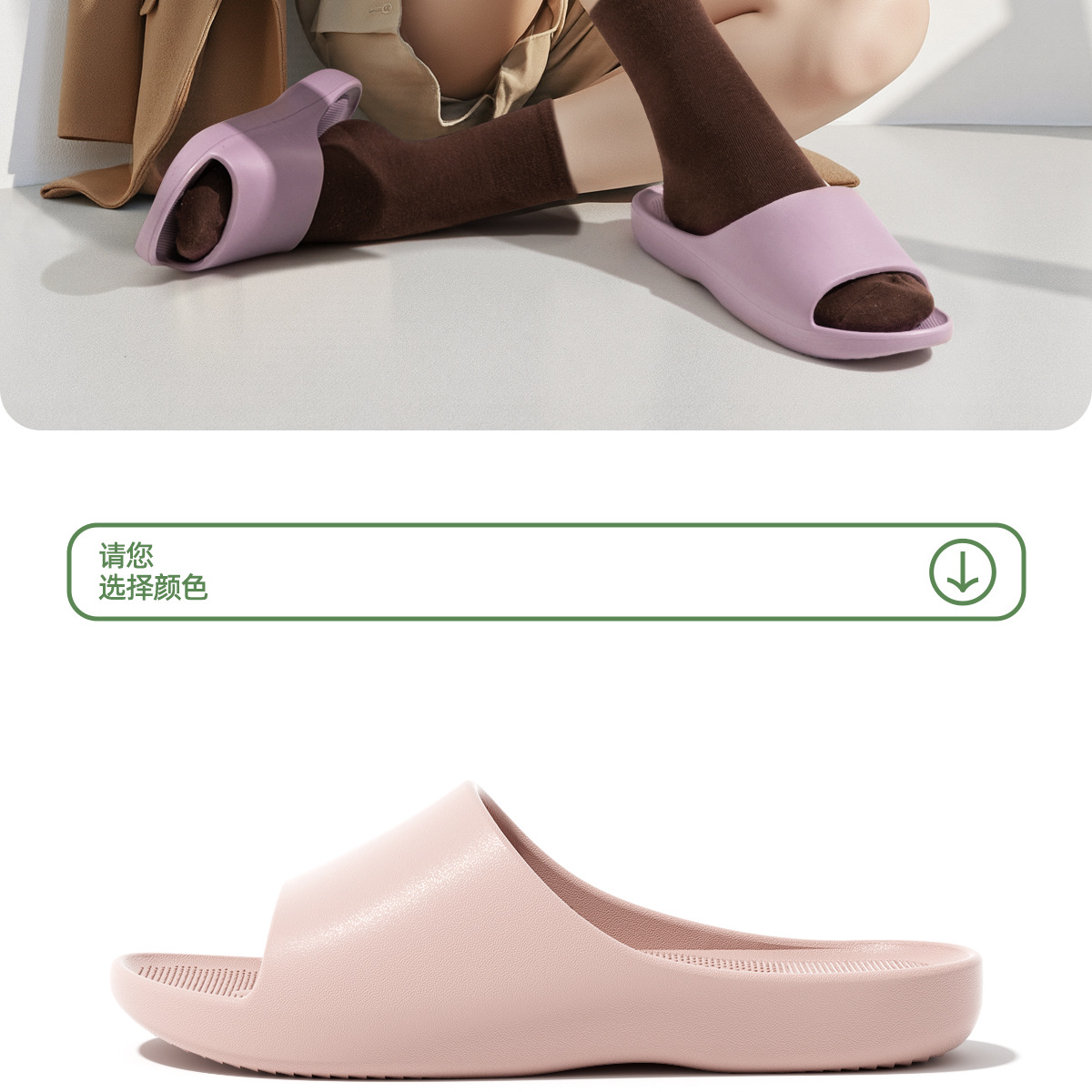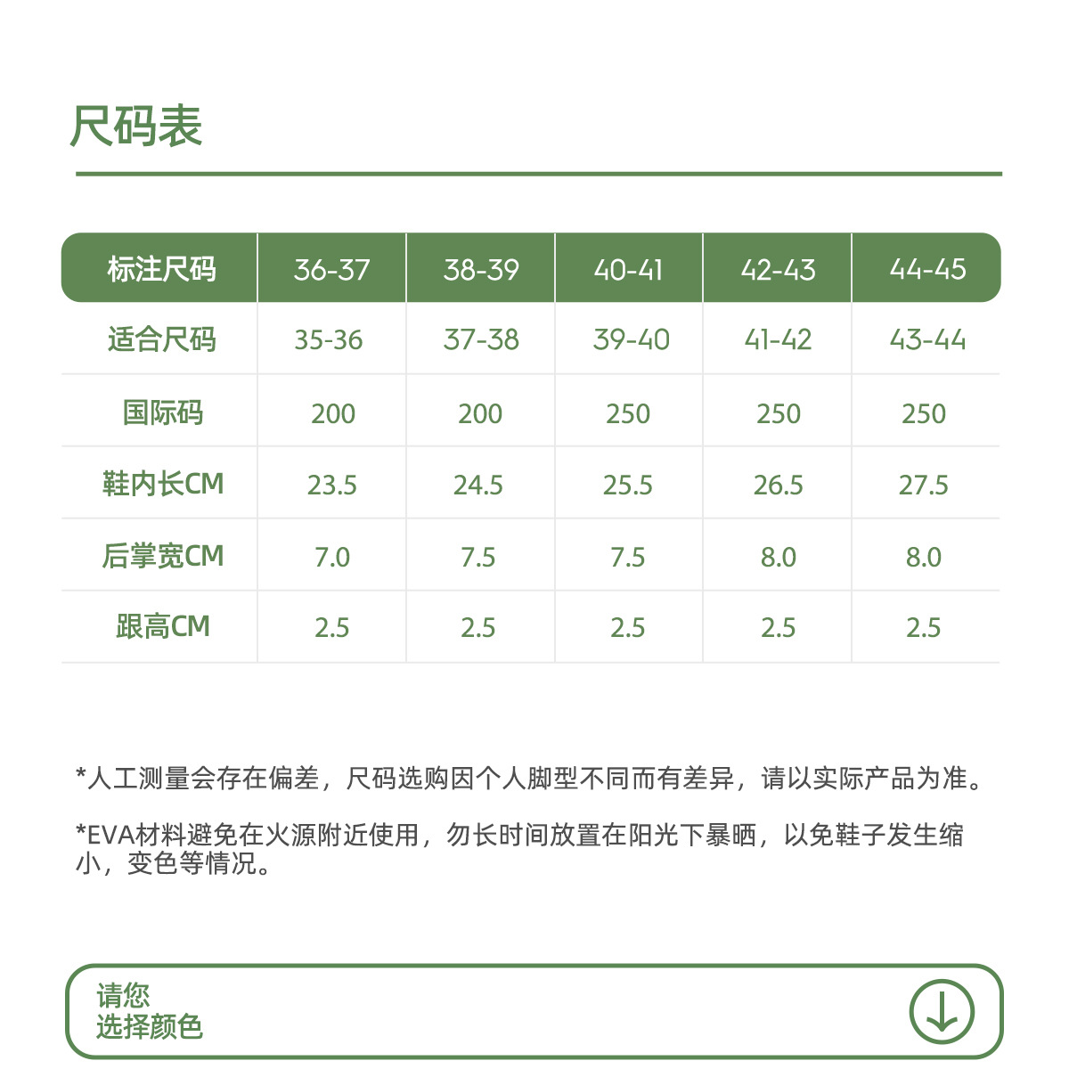 温馨提示:EVA材质拖鞋需避免高温暴晒,长时间高温会导致鞋子产生变形。