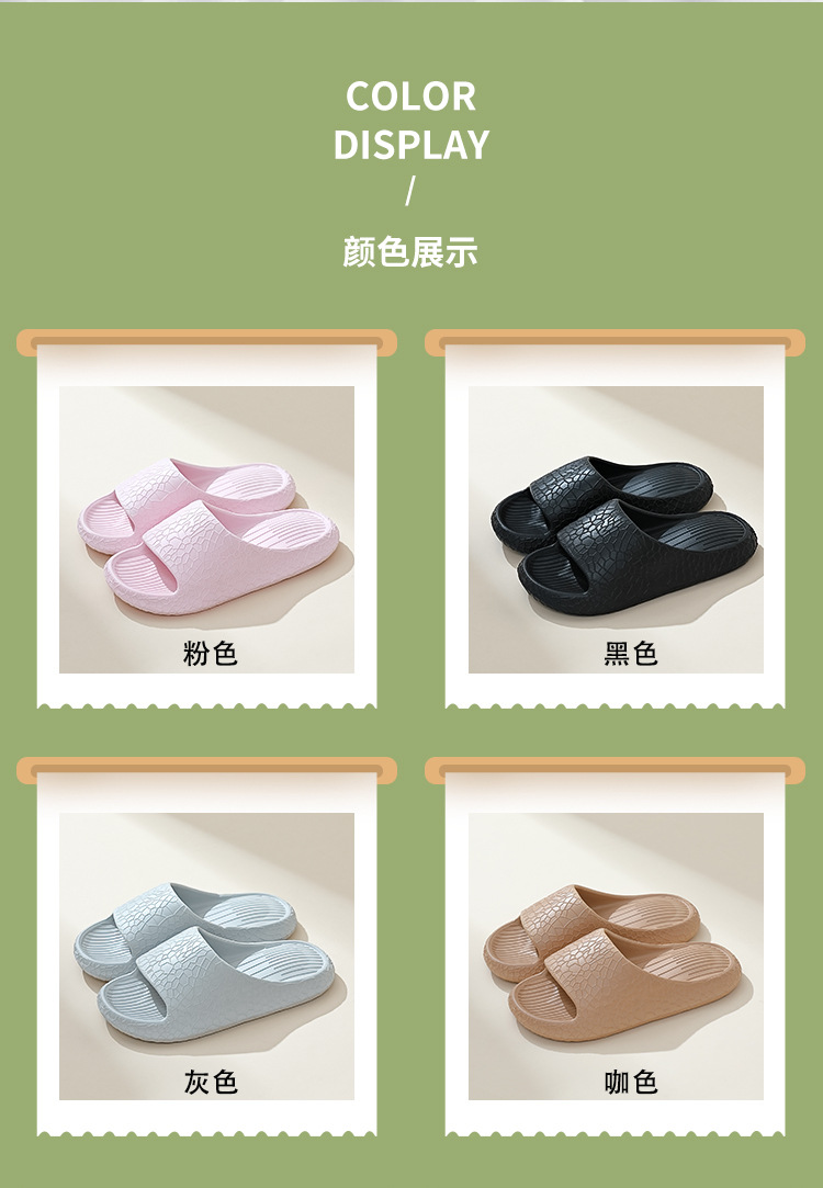 温馨提示:EVA材质拖鞋需避免高温暴晒,长时间高温会导致鞋子产生变形。
