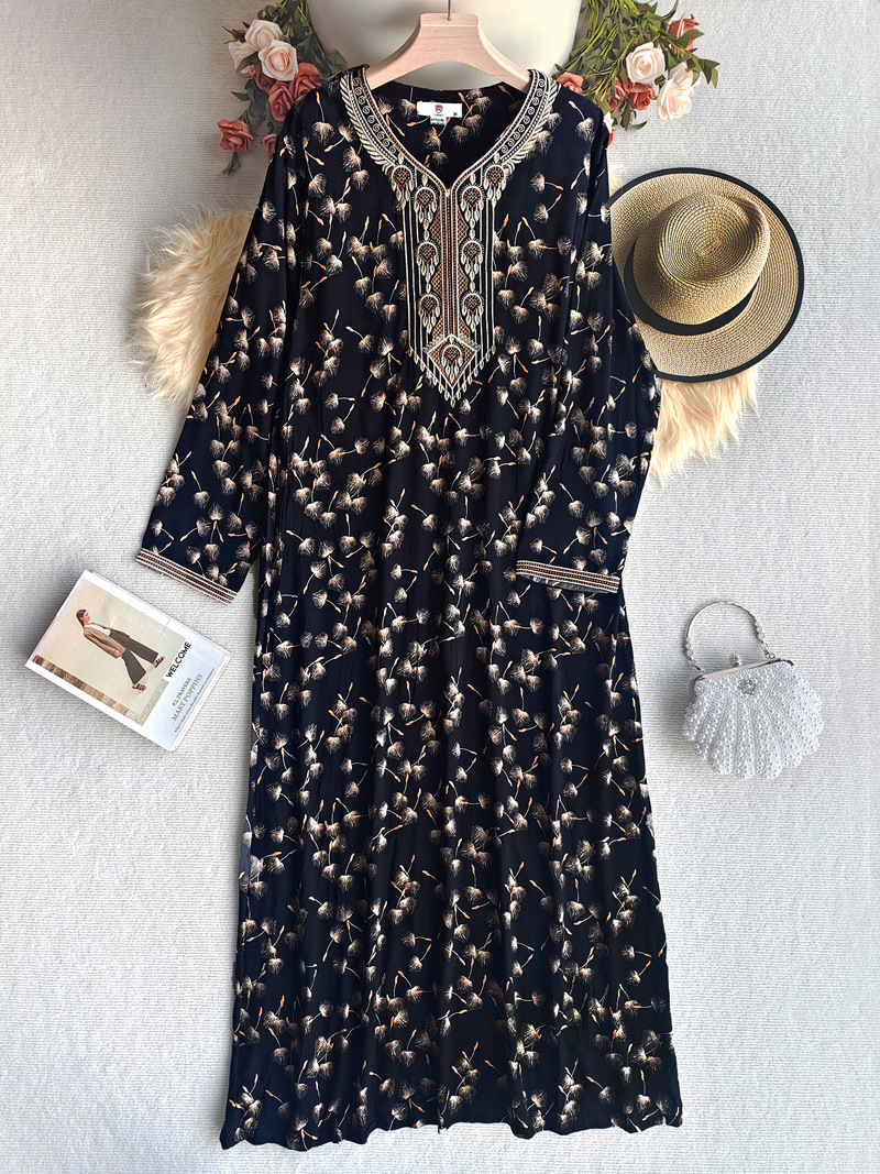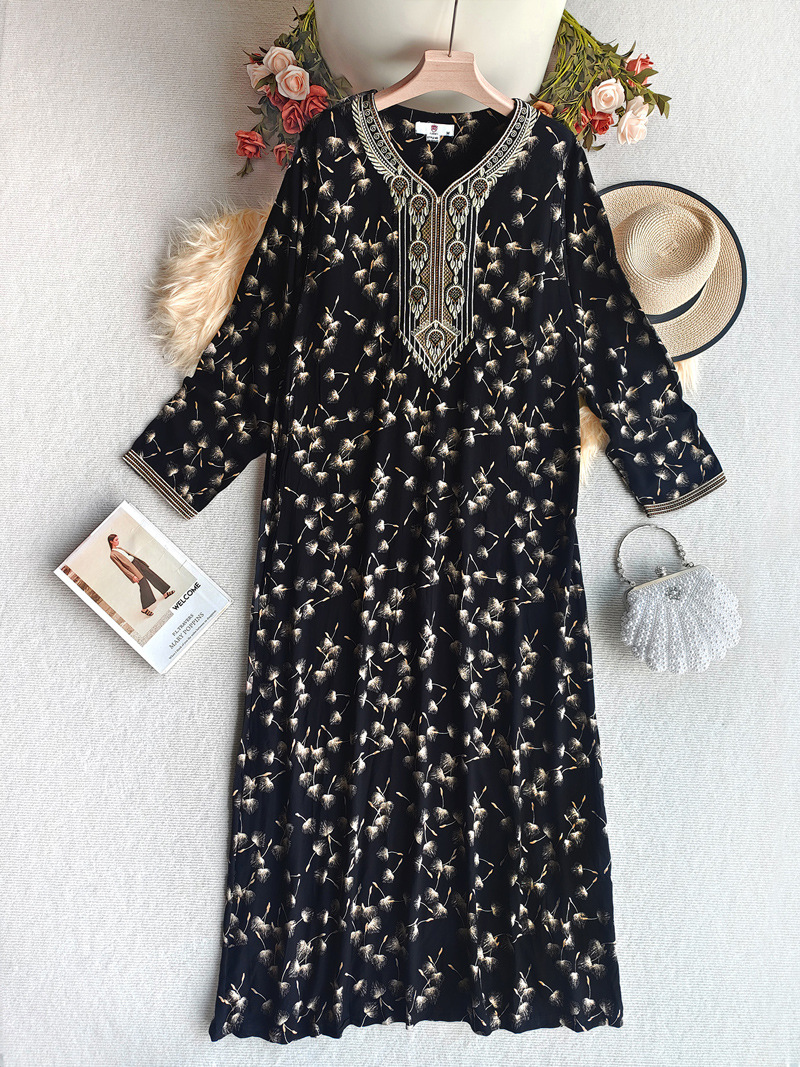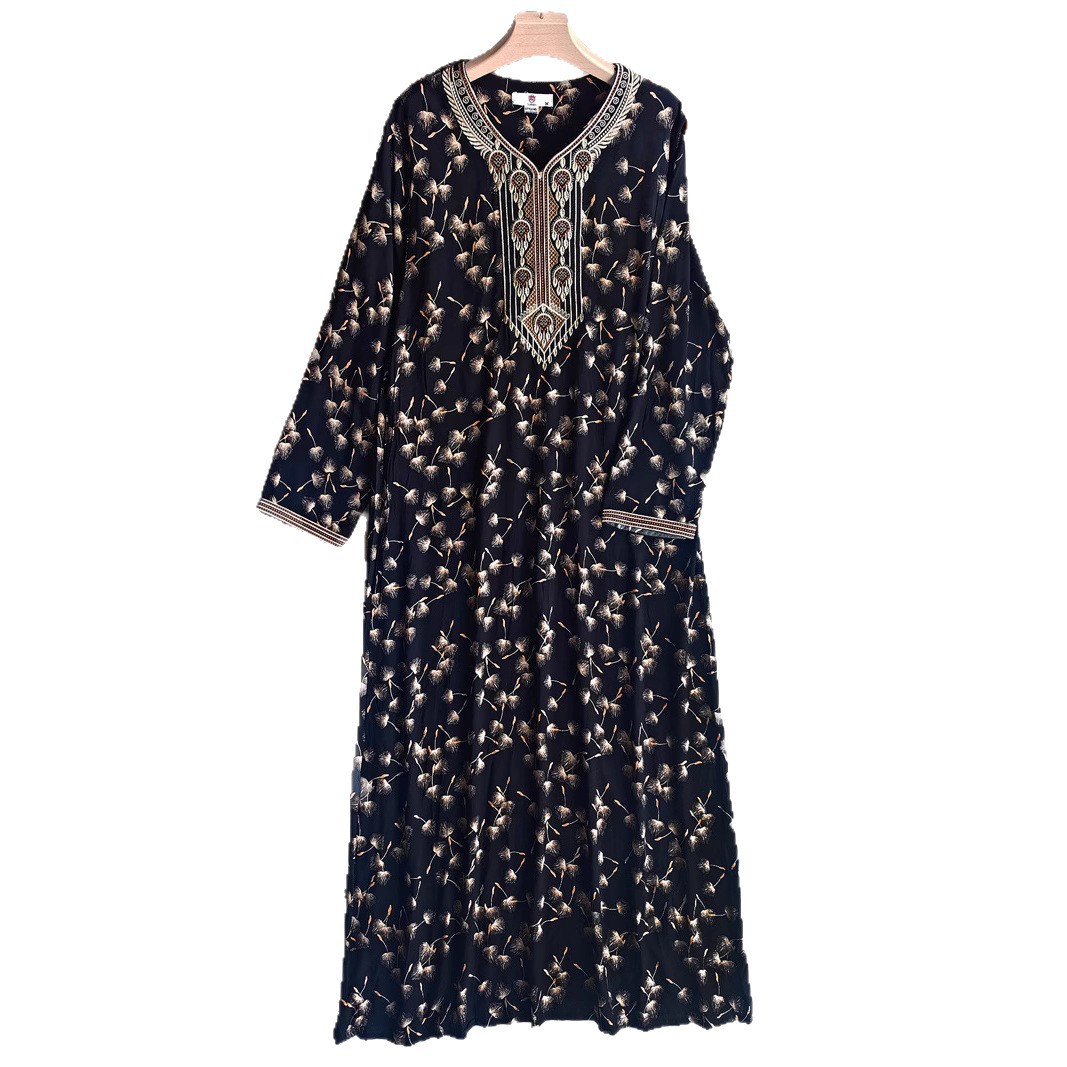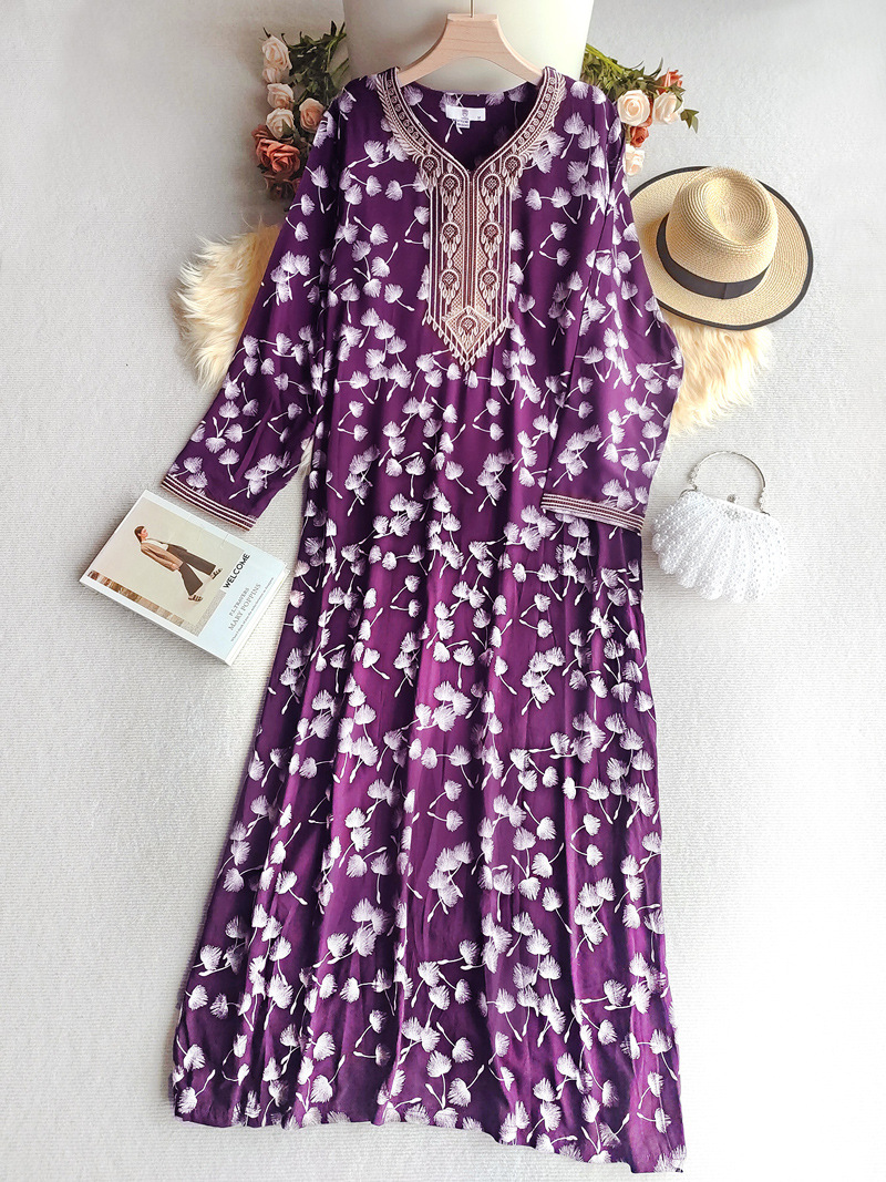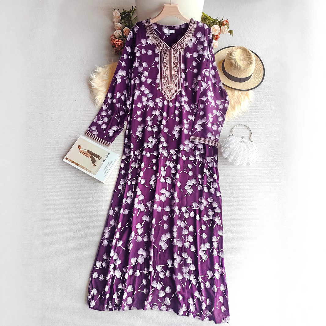 面料名称: 人棉 主面料成分: 其它 工艺: 刺绣 上市年份/季节: 2025 流行元素: 做旧 货号: WN-66343 颜色: 黑色,紫色 尺码: M,L,XL,XXL 主面料成分含量: 95%及以上 跨境风格类型: 民族部落 裙长: 长裙 袖型: 常规袖 袖长: 九分袖 是否跨境货源: 是 主要下游销售地区1: 中东 主要下游销售地区2: 中东 重量: 0.284 kg/件