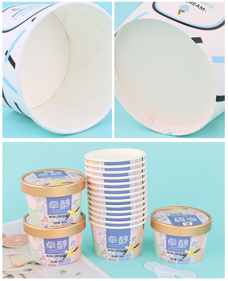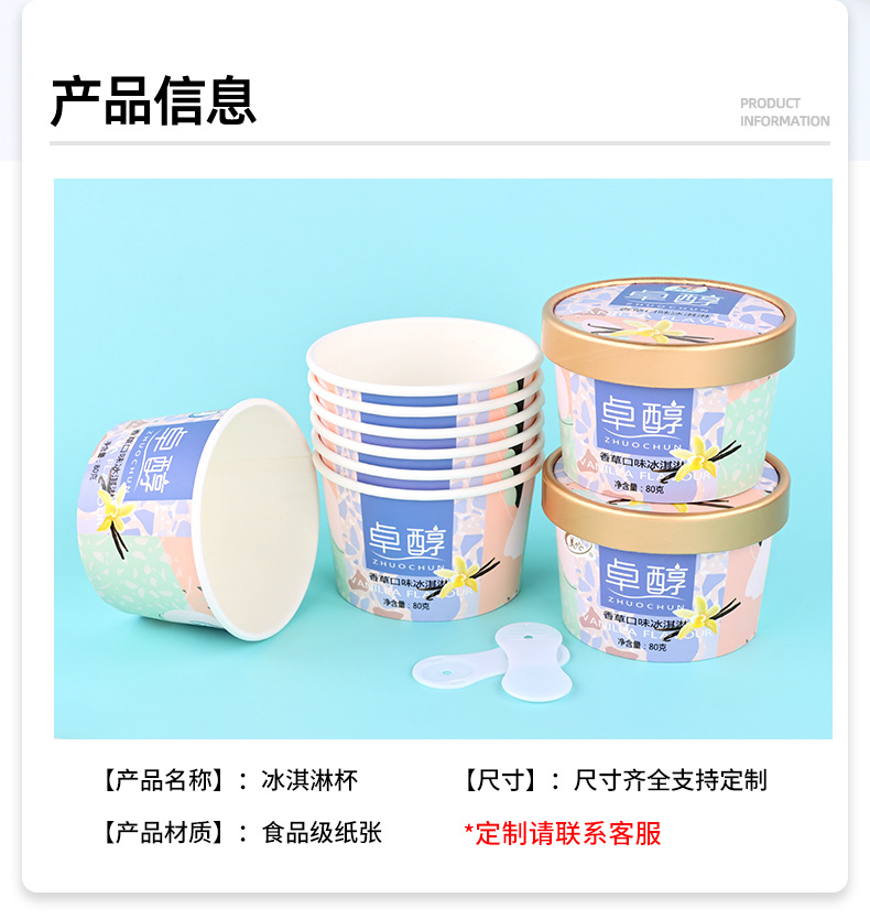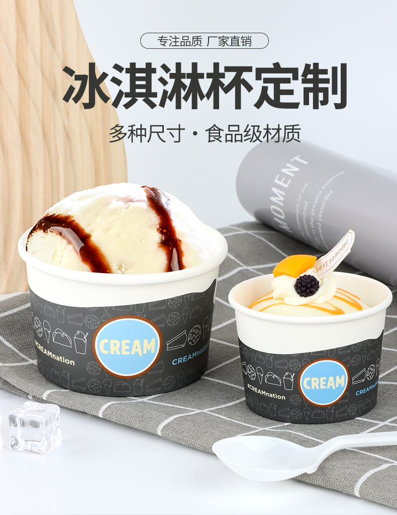 一次性纸杯定制冰淇淋杯子雪糕冰激凌纸碗炒酸奶专用圆形带盖定做