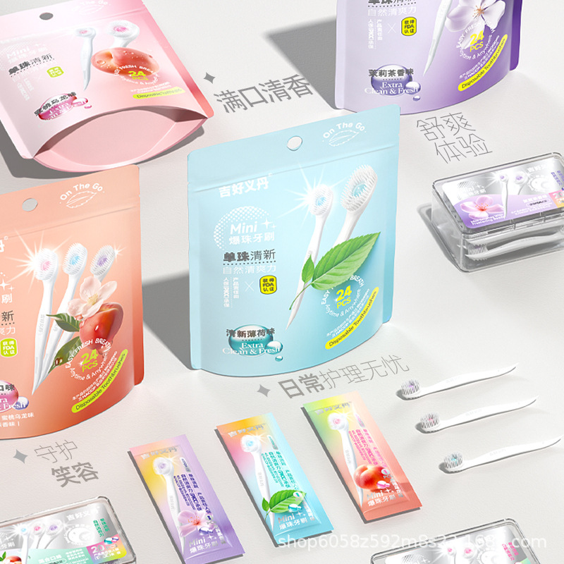 厂家批发塑料爆珠牙刷爆珠一次性牙刷成人清洁旅游专用抖音爆款