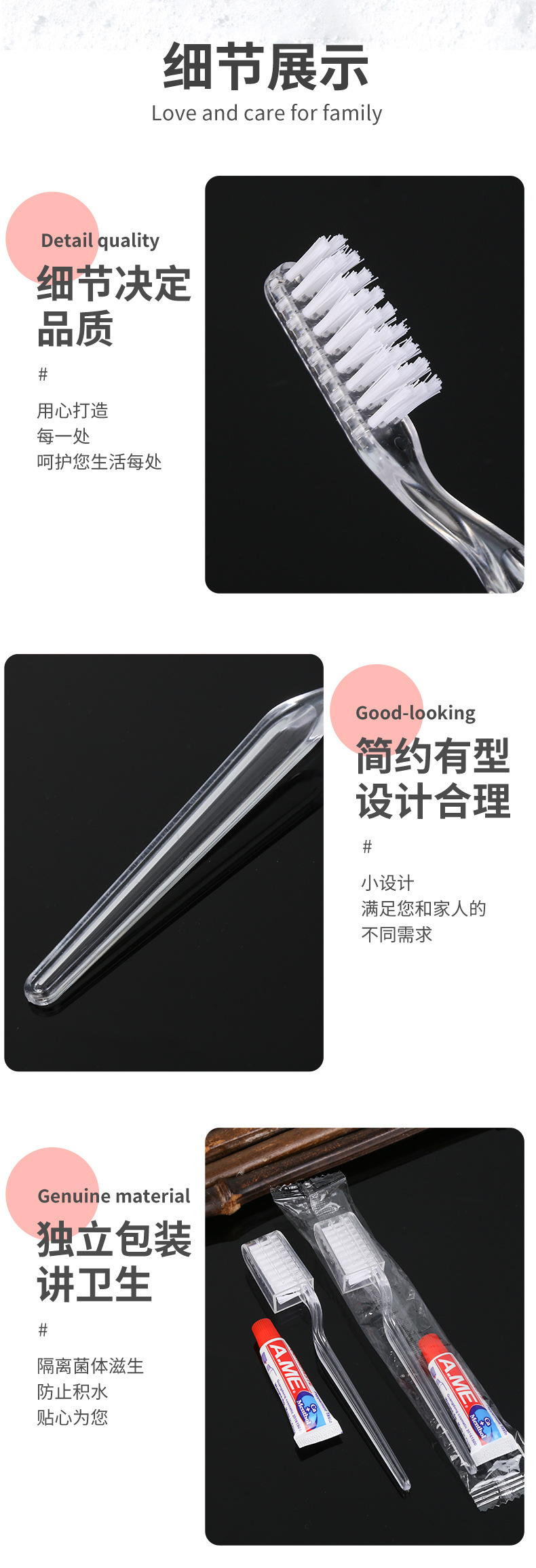 现货批发酒店民宿洗漱用品一次性牙刷简约白色透明一次性牙刷牙膏 投诉