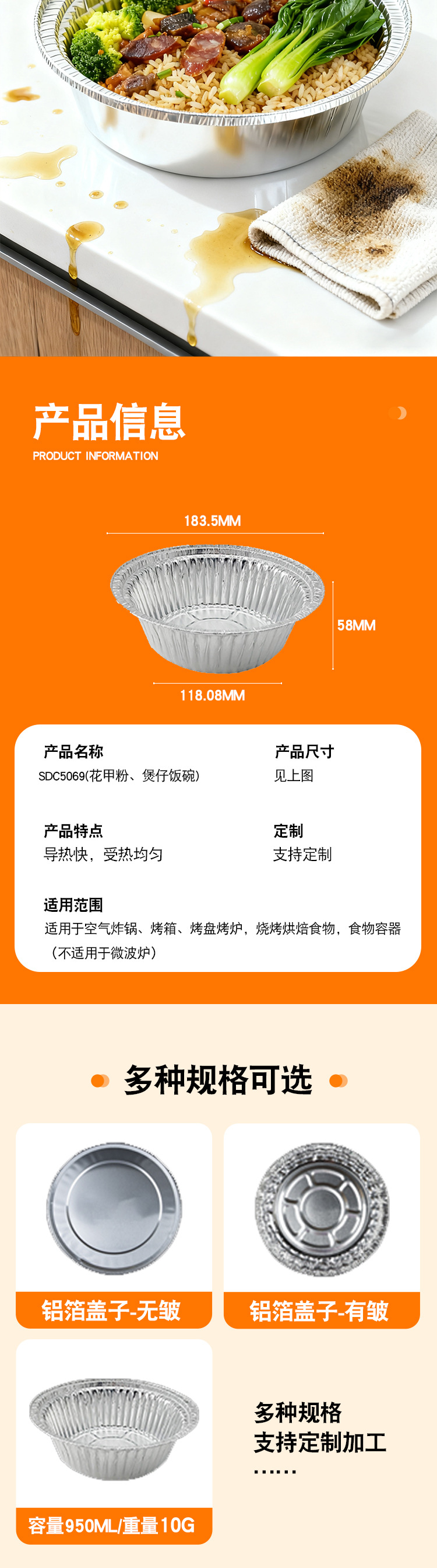 形状: 圆形 材质: 铝箔 图案: 其它 类别: 一次性碗 进口: 否 产地: 宁波 颜色: 煲仔饭碗 规格: 煲仔碗 是否有专利: 否 重量: 0.288 kg/支
