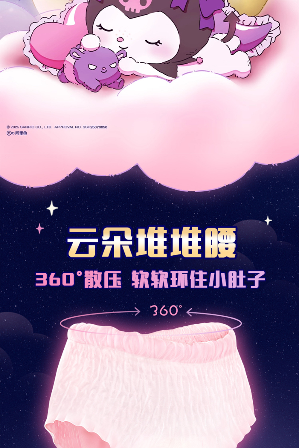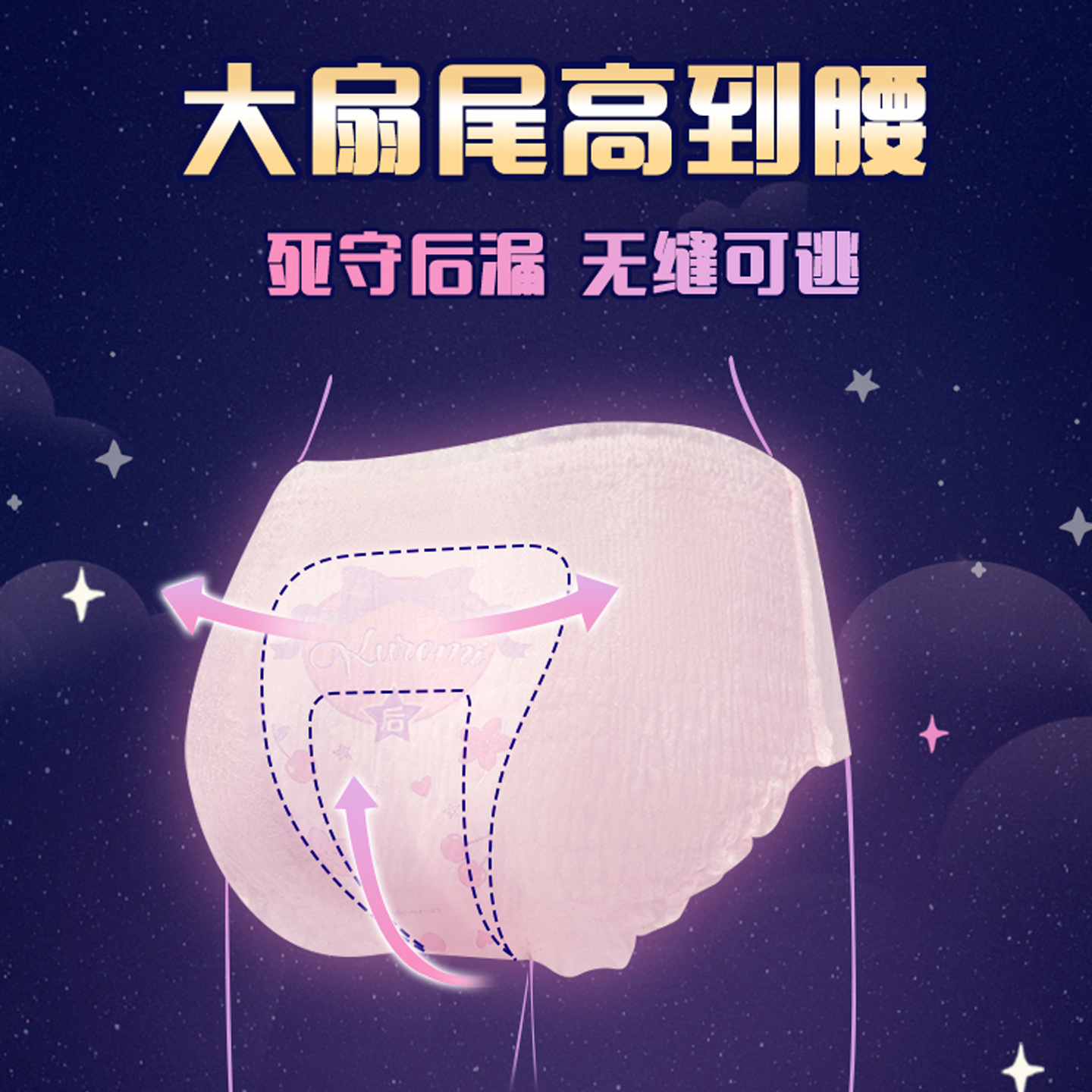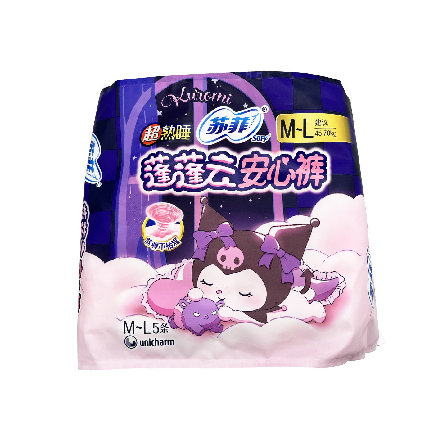 苏菲裤型卫生巾超熟睡蓬蓬云安心裤M-L码夜用姨妈巾安睡裤5条装