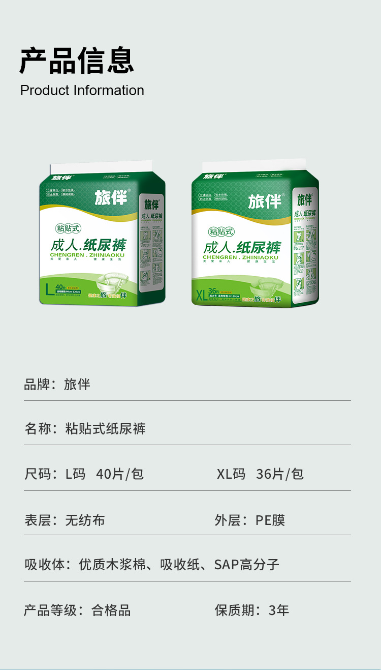 旅伴成人纸尿裤老人用男女老年尿不湿粘贴提拉裤成人非拉拉裤40片