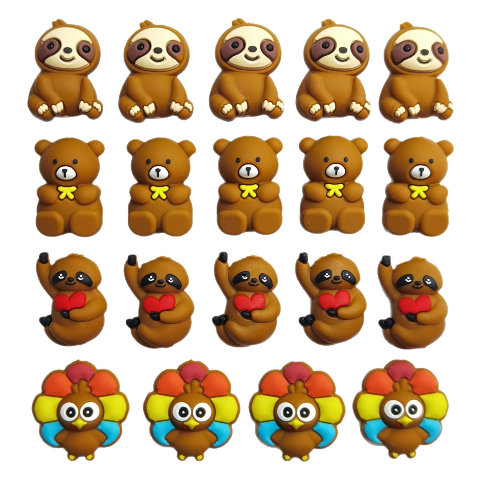 材质: 硅胶 处理工艺: 滴胶 种类: diy饰品配件 款式: 卡通珠 产地: 深圳 货号: 滴胶3D棕色系珠子 品牌: 其他 颜色: 树懒1,树懒2,小熊,火鸡 是否跨境出口专供货源: 是 有可授权的自有品牌: 否 上市年份/季节: 2025年春季 风格: 无 功能: 锻炼咀嚼能力,安抚情绪,缓解宝宝出牙不适 图案: 树懒,小熊,火鸡 材质安全: 食品级硅胶,婴儿牙胶可啃咬 主要销售地区: 欧洲,南美,东南亚,北美,东北亚,中东 重量: 0.5 kg/个