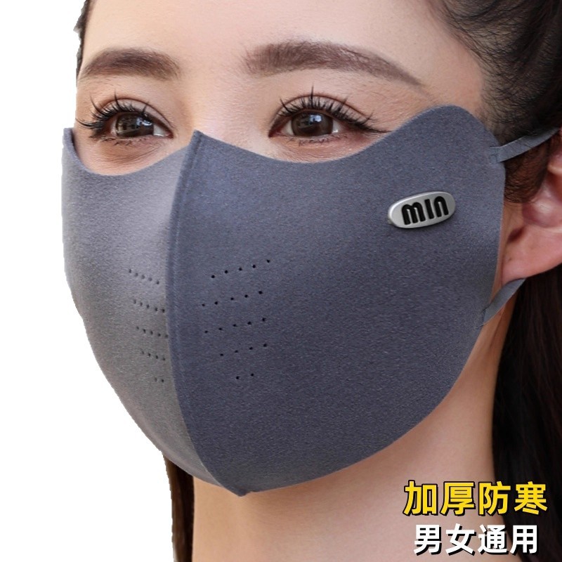 暖绒秋冬保暖口罩女时尚简约立体透气加厚款高颜值骑行防寒面罩男