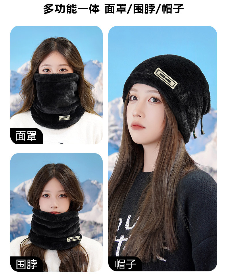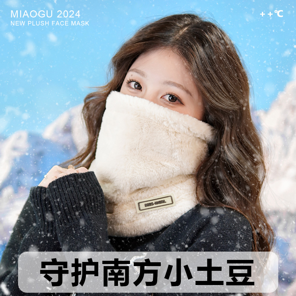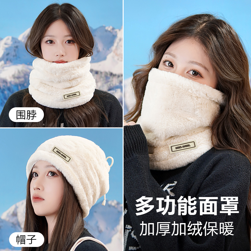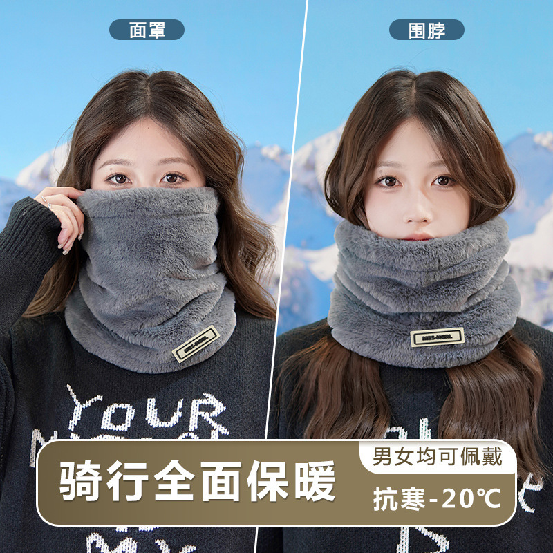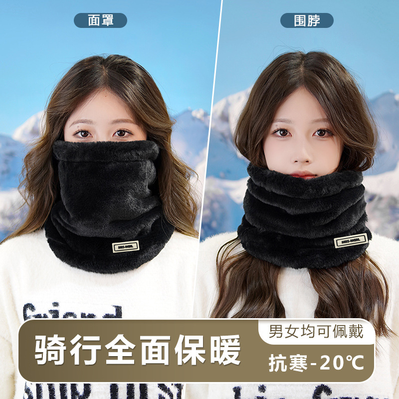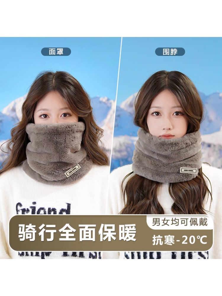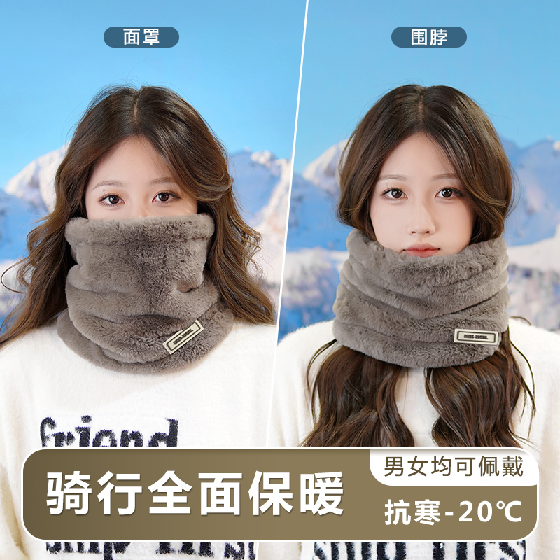毛绒围脖女冬季加绒厚东北防寒装备脖套护颈保暖骑行防风面罩全脸