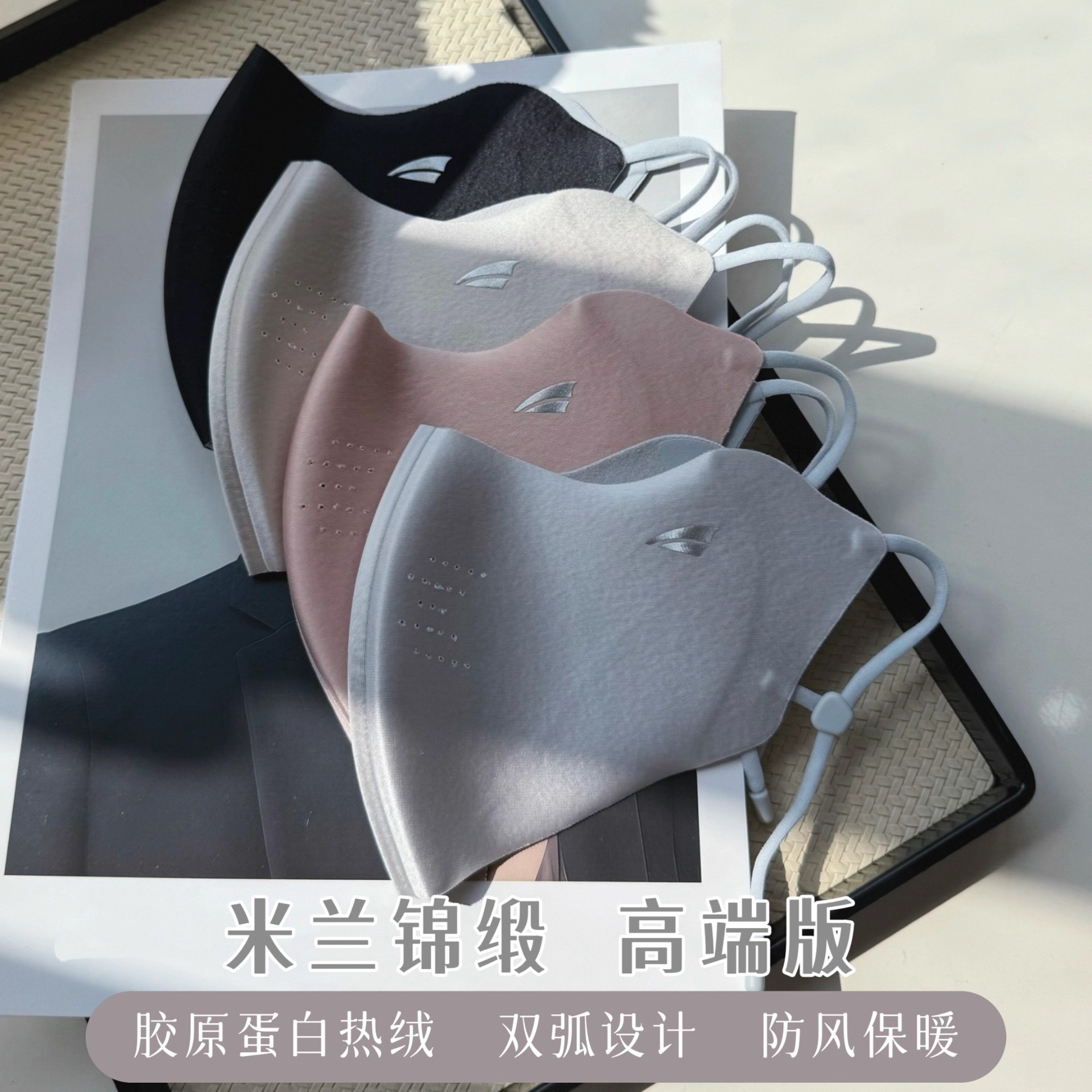 米兰锦缎高定秋冬保暖口罩胶原蛋白暖绒加厚户外防风防寒透气面罩
