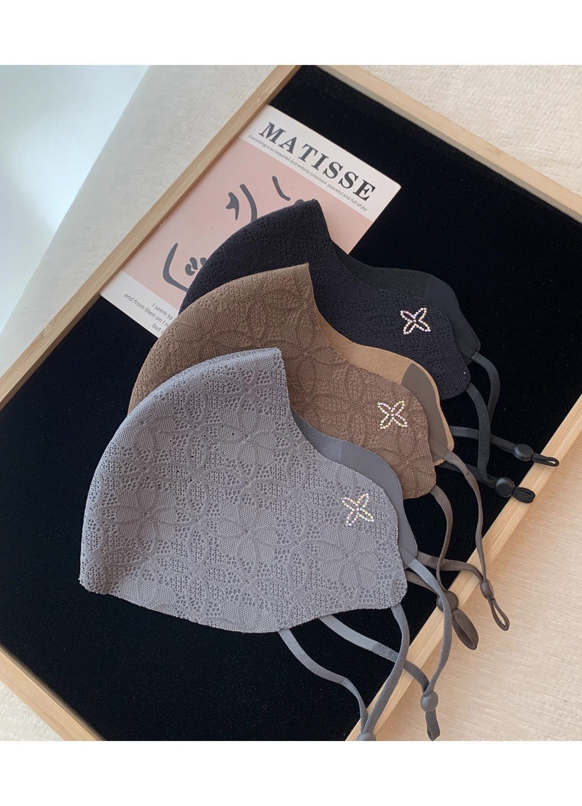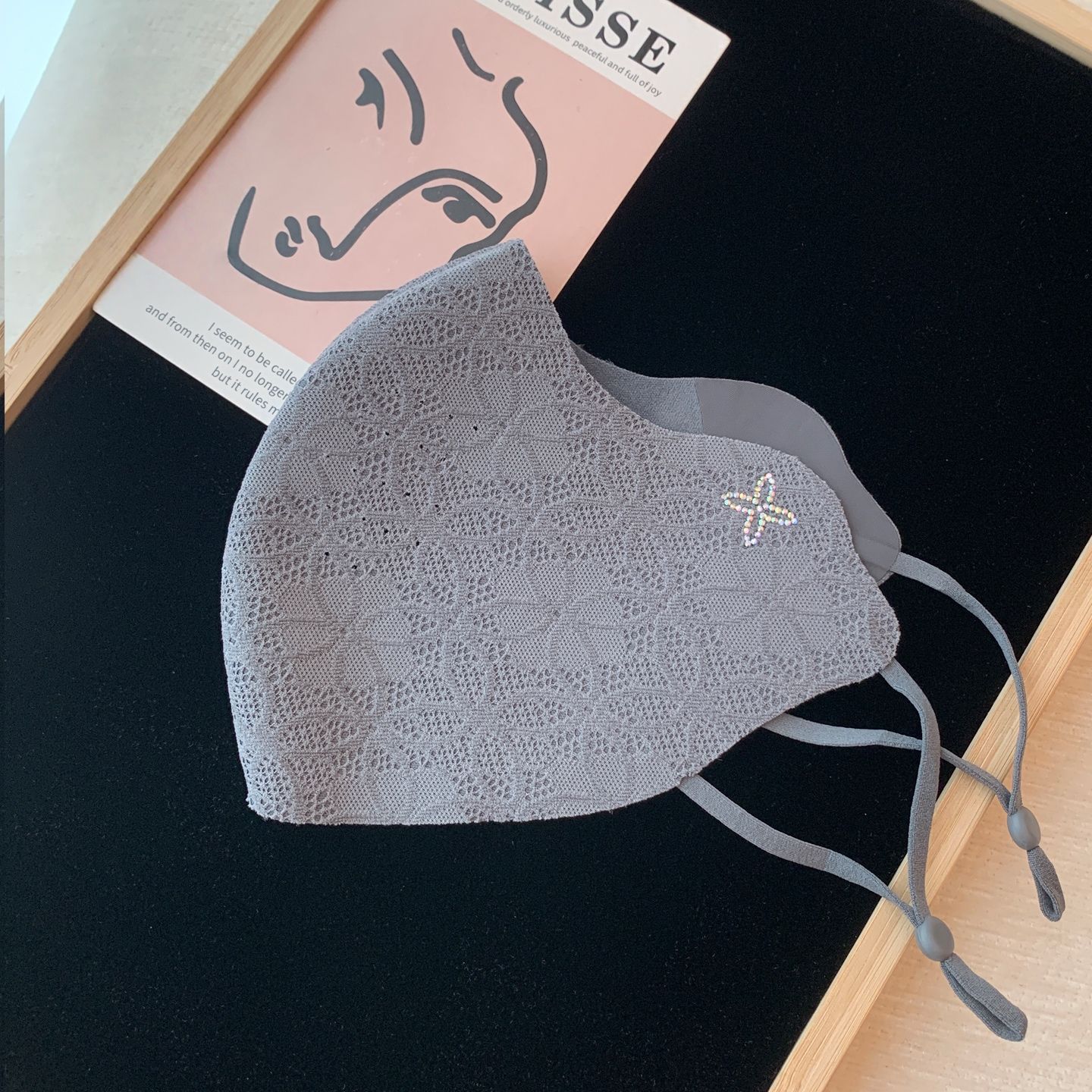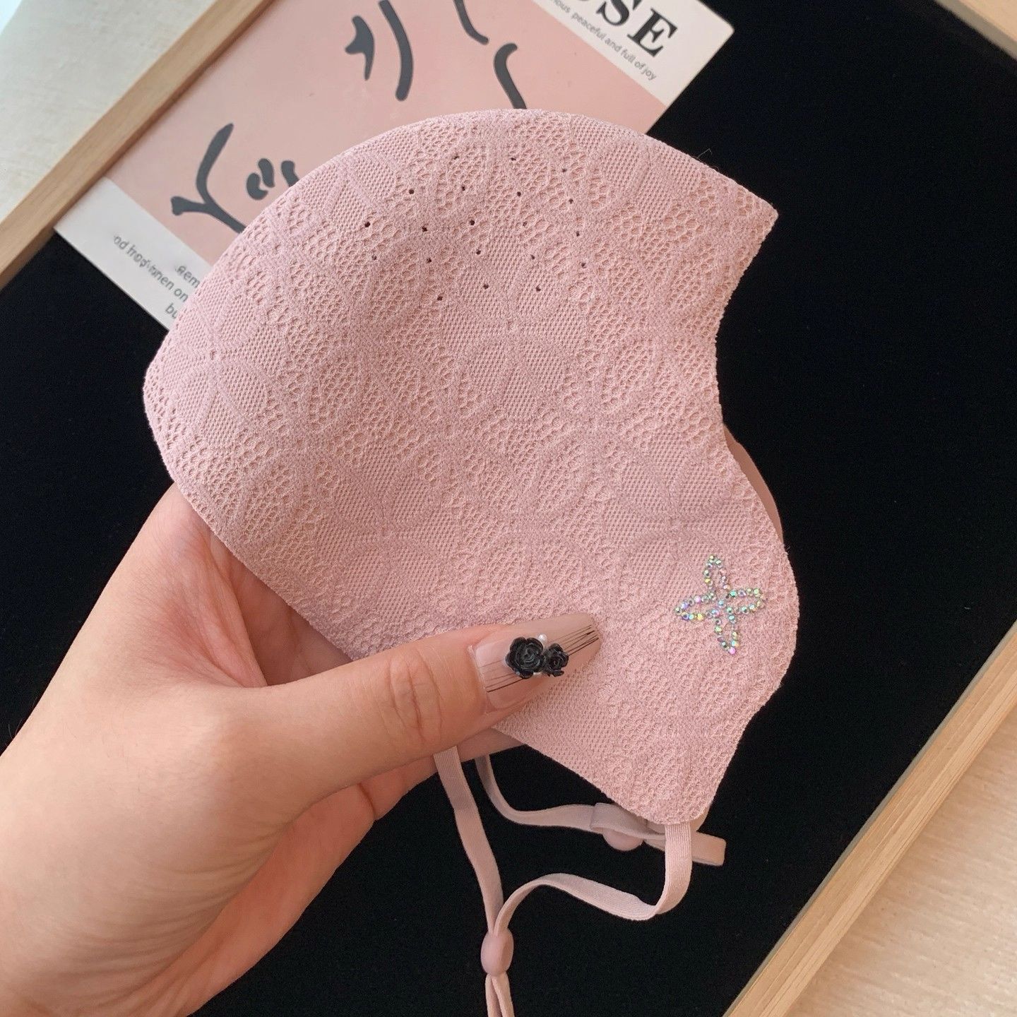 2025秋冬新款保暖口罩可调节高颜值优雅气质蕾丝带钻防风防寒面罩